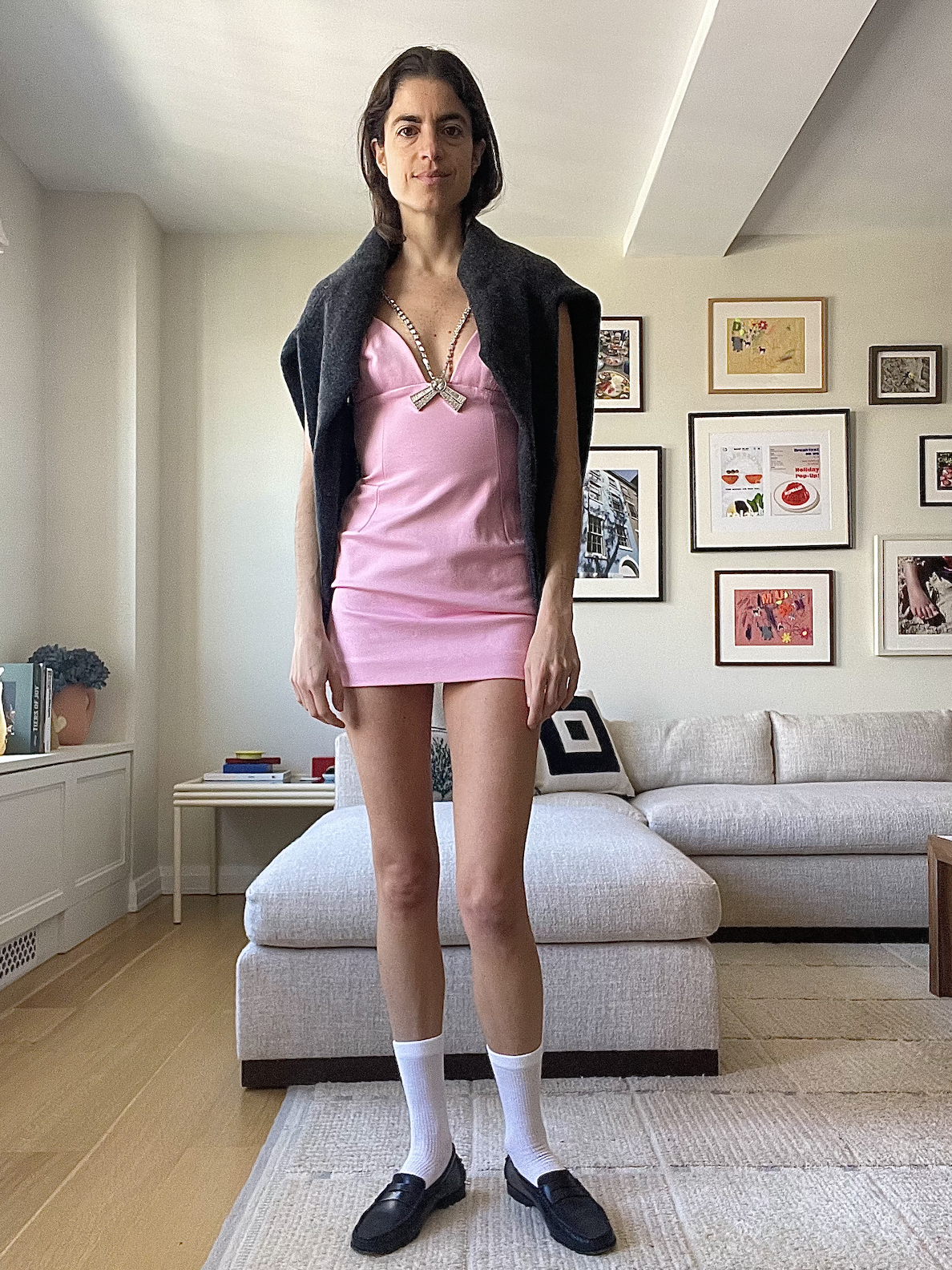 Area dress, Eileen Fisher socks, Tod’s loafers