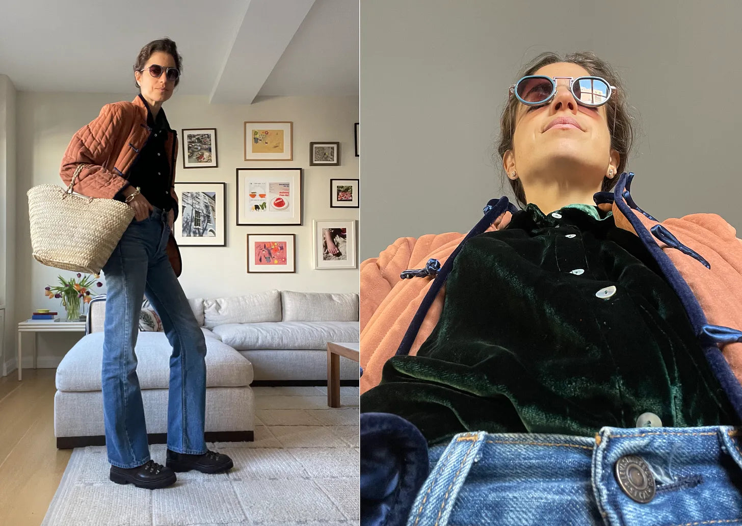 Yali jacket, Asceno top, Levi’s jeans, Grenson boots, Rosie Assoulin sunglasses