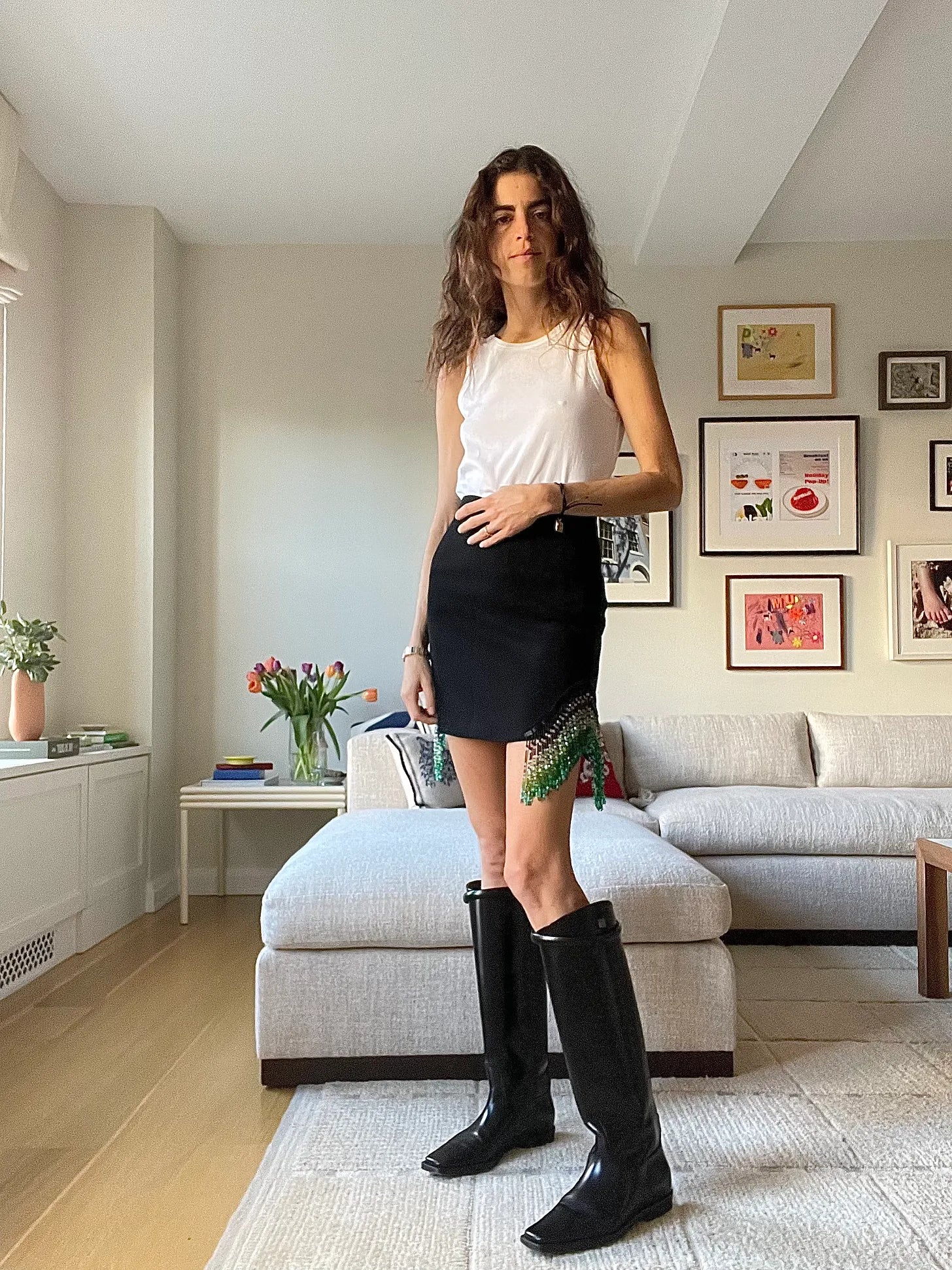 Here’s a solid wear-fancy-or-not tank top, Nafsika Skourti skirt, Toteme boots