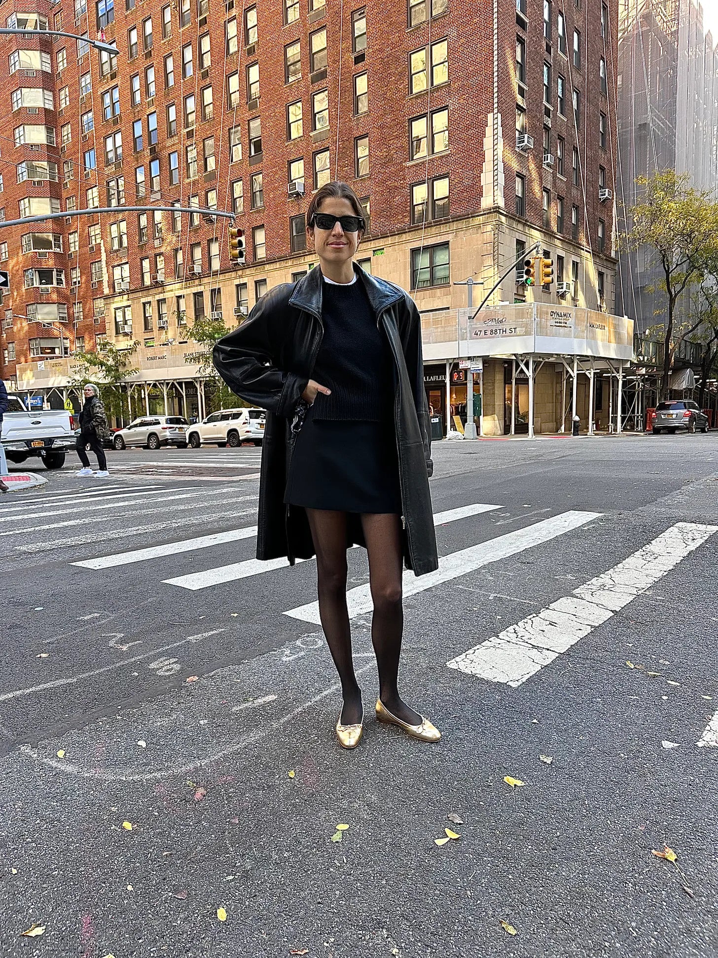 Vintage leather coat, Loulou Studios sweater (this isn’t the actual one, I can’t find it, but here is a good comp from J. Crew too, Veronica de Piante skirt (also good), Swedish Stockings tights, Manolo Blahnik flats
