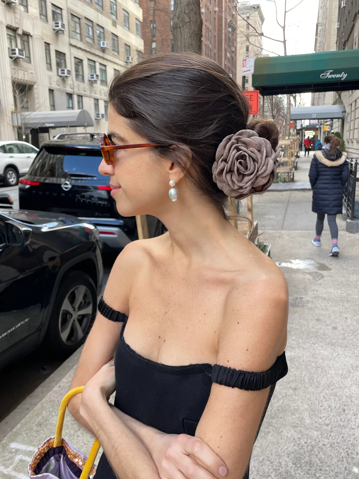 Sophie Bille Brahe earring (these from Etsy are smaller, but a similar vibe), Caro Editions hair clip