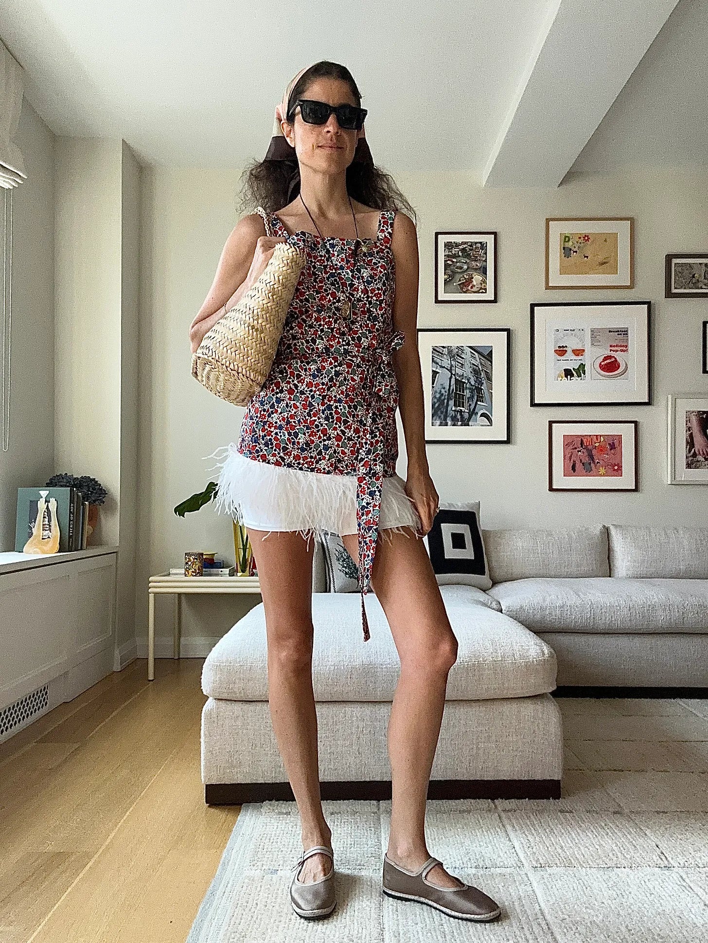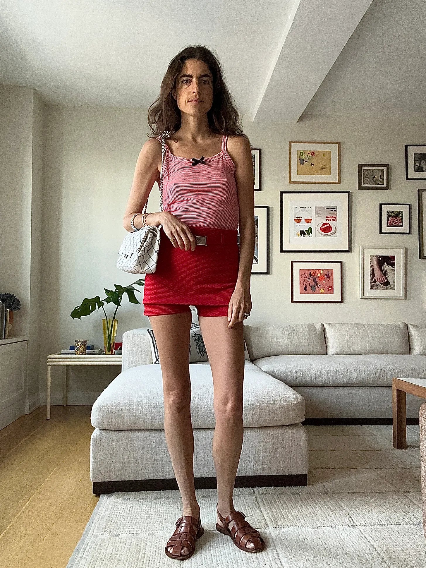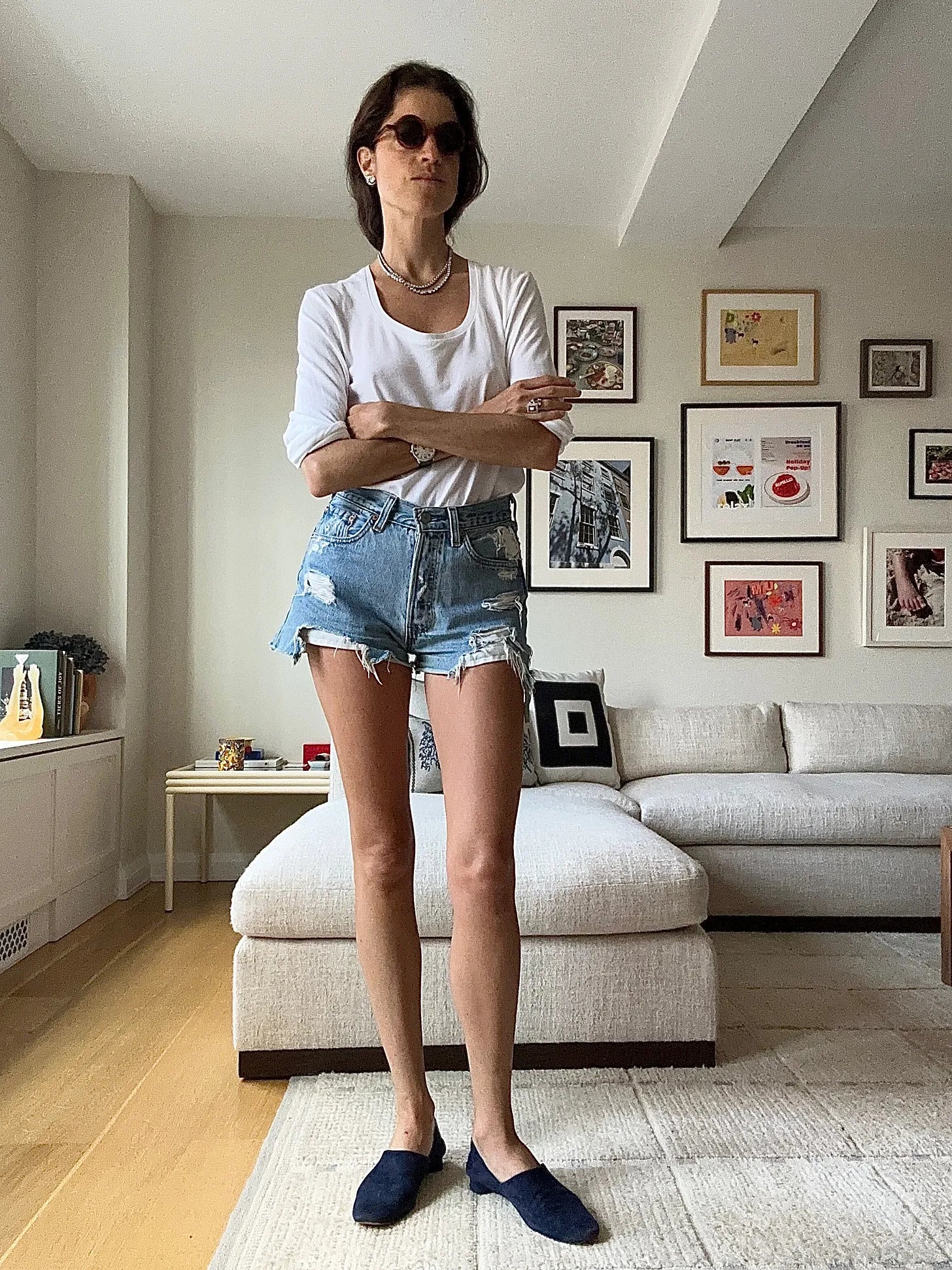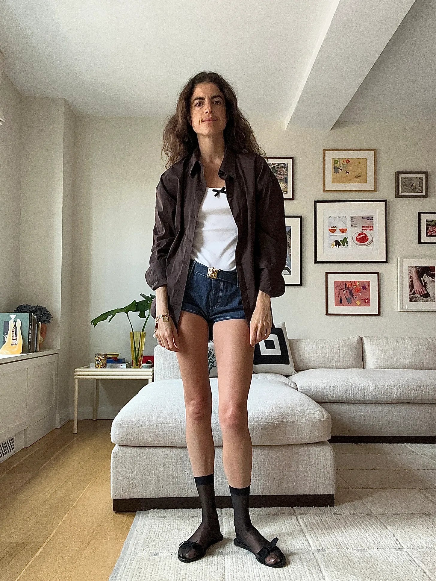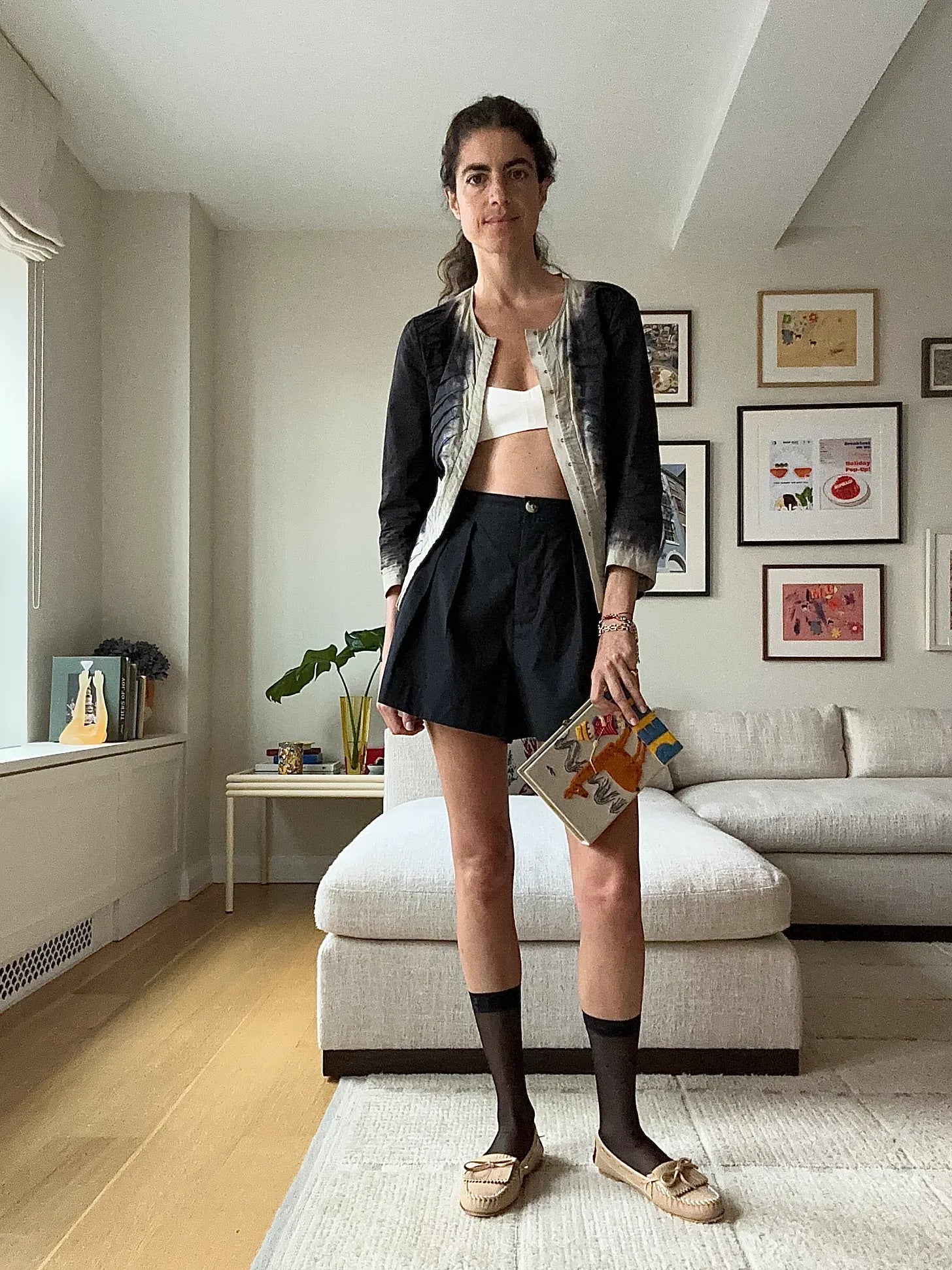 This was the original bridge, before the in-law look, and connects to the next look through the cotton Doen shorts. Connects above too with the socks and bra, huh. The loafers are Jamie Haller