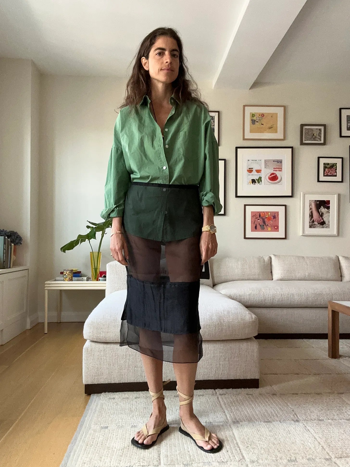 Another plot break: one unsung hero of second-half summer dressing has been the pairing of things that hit right above or fall right below knee length with lace-up sandals. LMND shirt, Khaite skirt (dropping in the vintage Prada one once more), The Row lace-ups (I still love these)