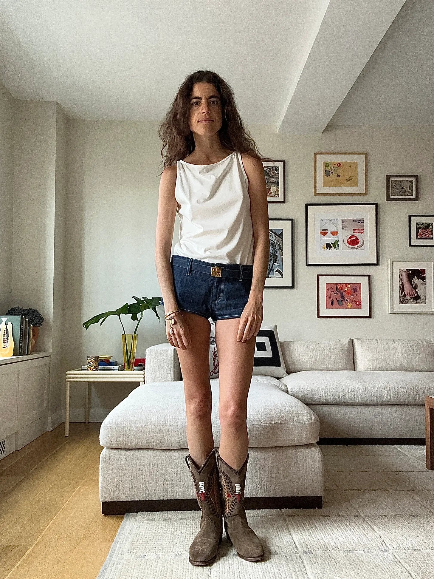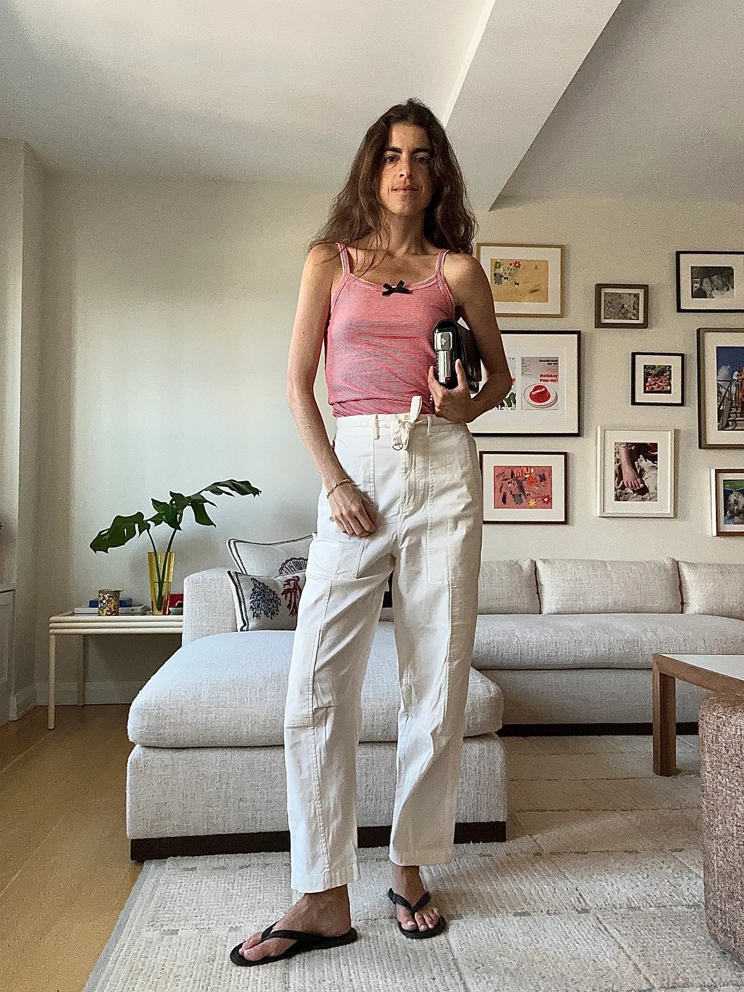 Caro Editions tank (it is Caroline Brasch’s brand), Sea New York cargo pants (I think the Totemes are the best alt for these; these from Matteau might work too) Havaianas flip flops, and a black Edie Parker clutch with a lighter attached. For some reason, every time I have put this outfit on this summer I have felt most honest. Unimpressionable, laid back, kind of feminine, but also cool and ideal to loiter on street corners while waiting for a camp bus full of my kids to return to the city