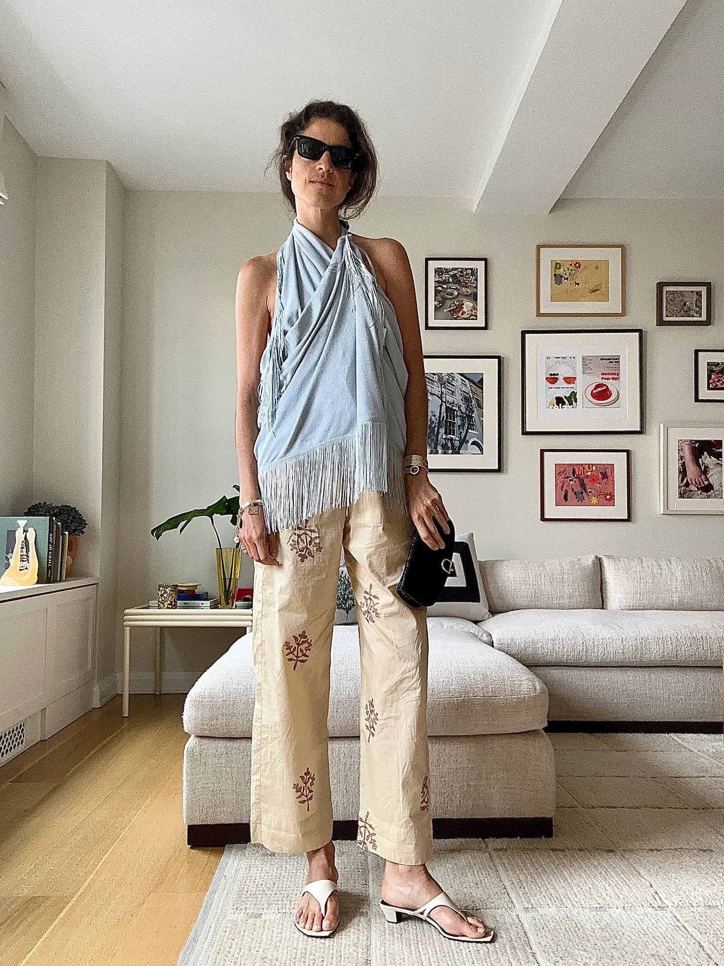Same top (comes like this too), Matteau pants, Jamie Haller sandals