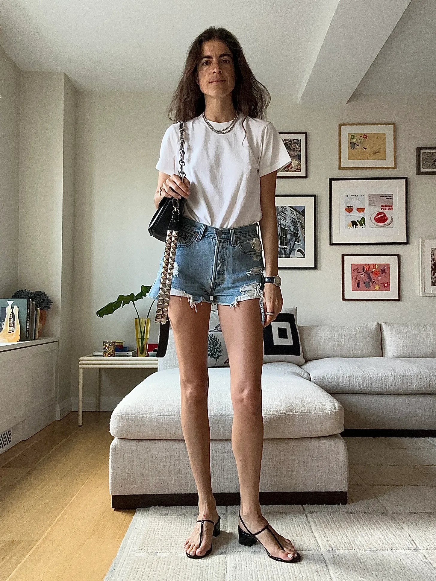Oh, it’s the same look! I’m not the best editor, but this bag alternative required its own caption. The rest of the look is a rigid white t-shirt (Cos and Uniqlo make the best ones), Levi’s shorts and Doen sandals.