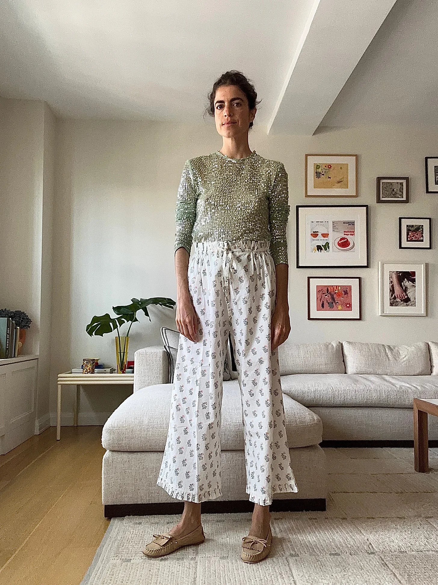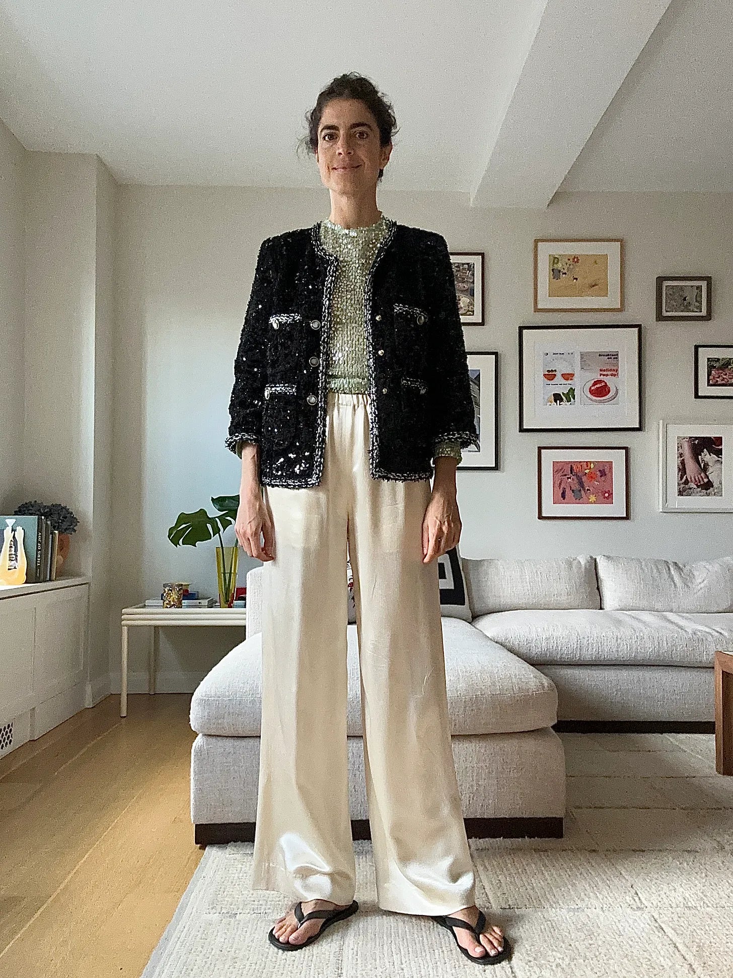And with the right change of shoes, this one could be a wedding guest look. …Anyone? Siedres sequins, 🤝 we meet again, St. John jacket, Attersee pants (has anyone tried these?), flip flops