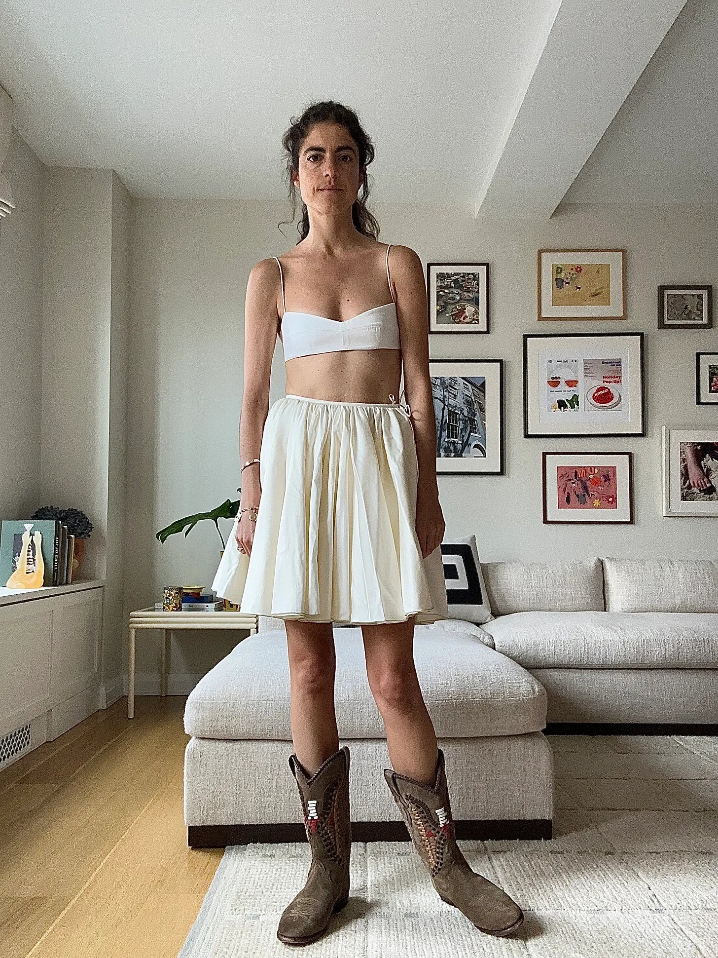 There’s a toss-off of garments from one look to the next that connects most of them in the below but I did lose the plot 6 or 7 times. Overall the gist is: wants to have fun, prioritizes being somewhat practical and more than anything else, values keeping the kernel of truth at the center of every creative pursuit (no matter how menial) alive. So that’s:…