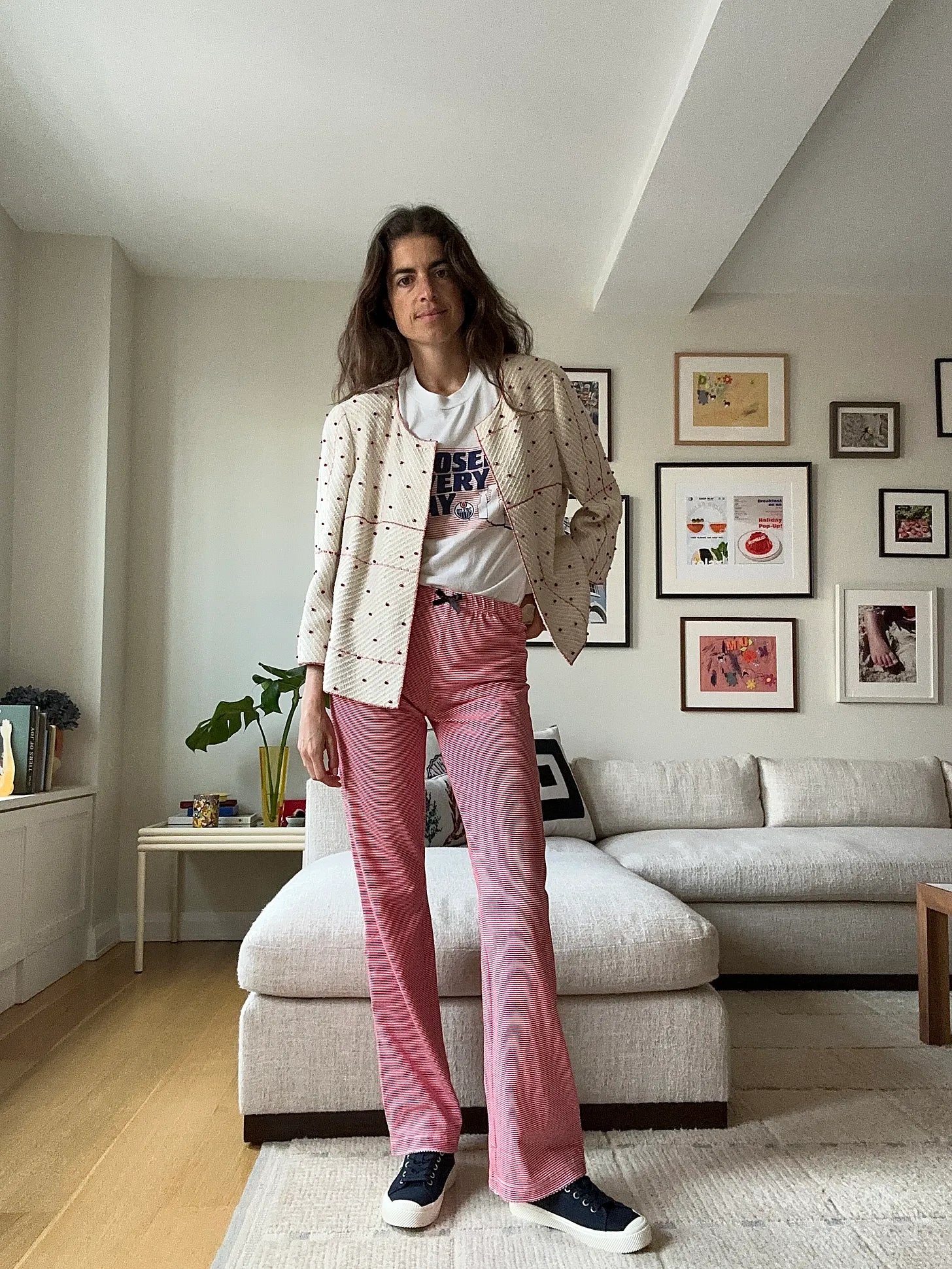 Here it is again, with a vintage Chanel jacket, Caro Editions pants (the companion piece to my tank) and Cariuma sneakers