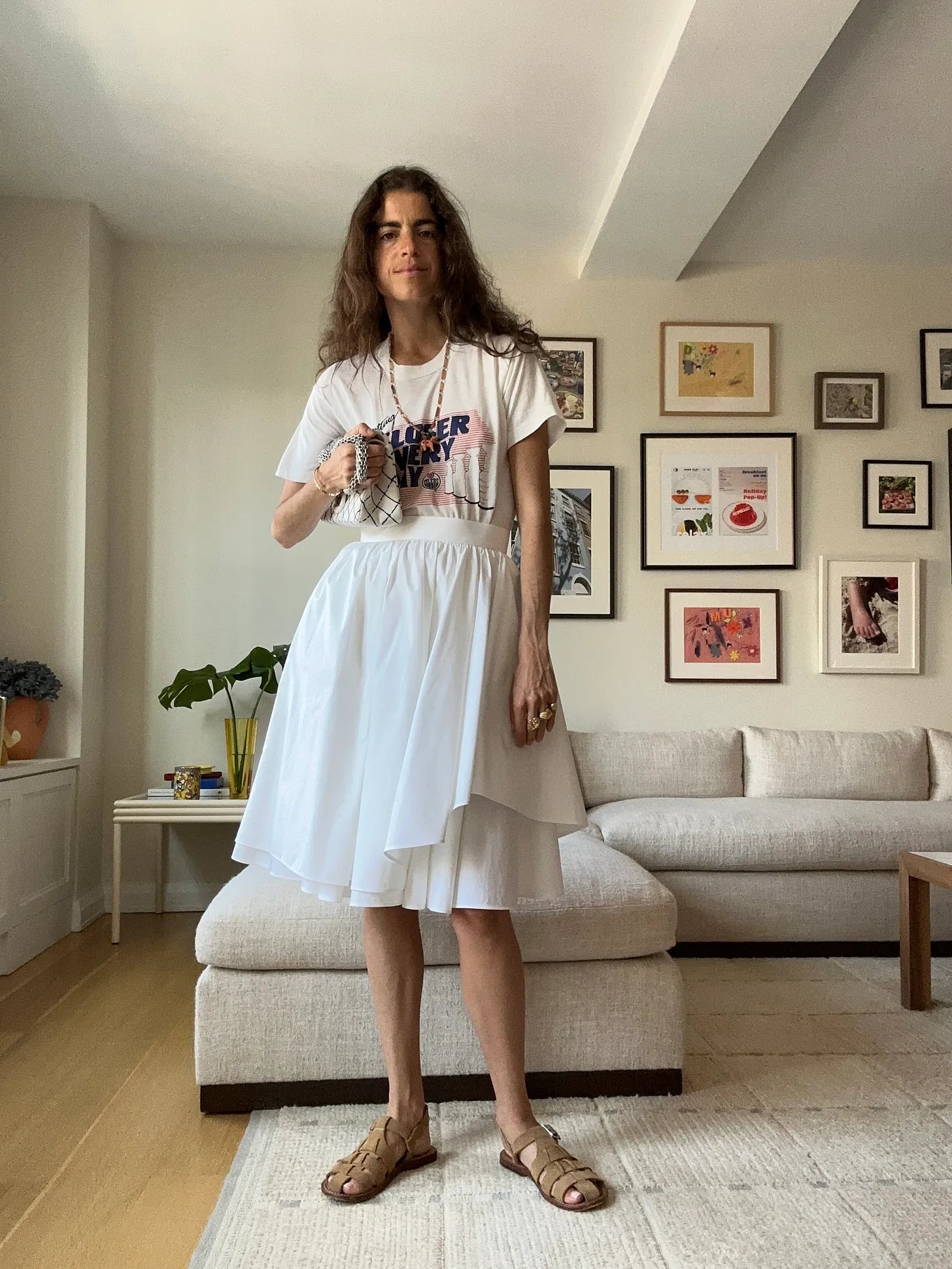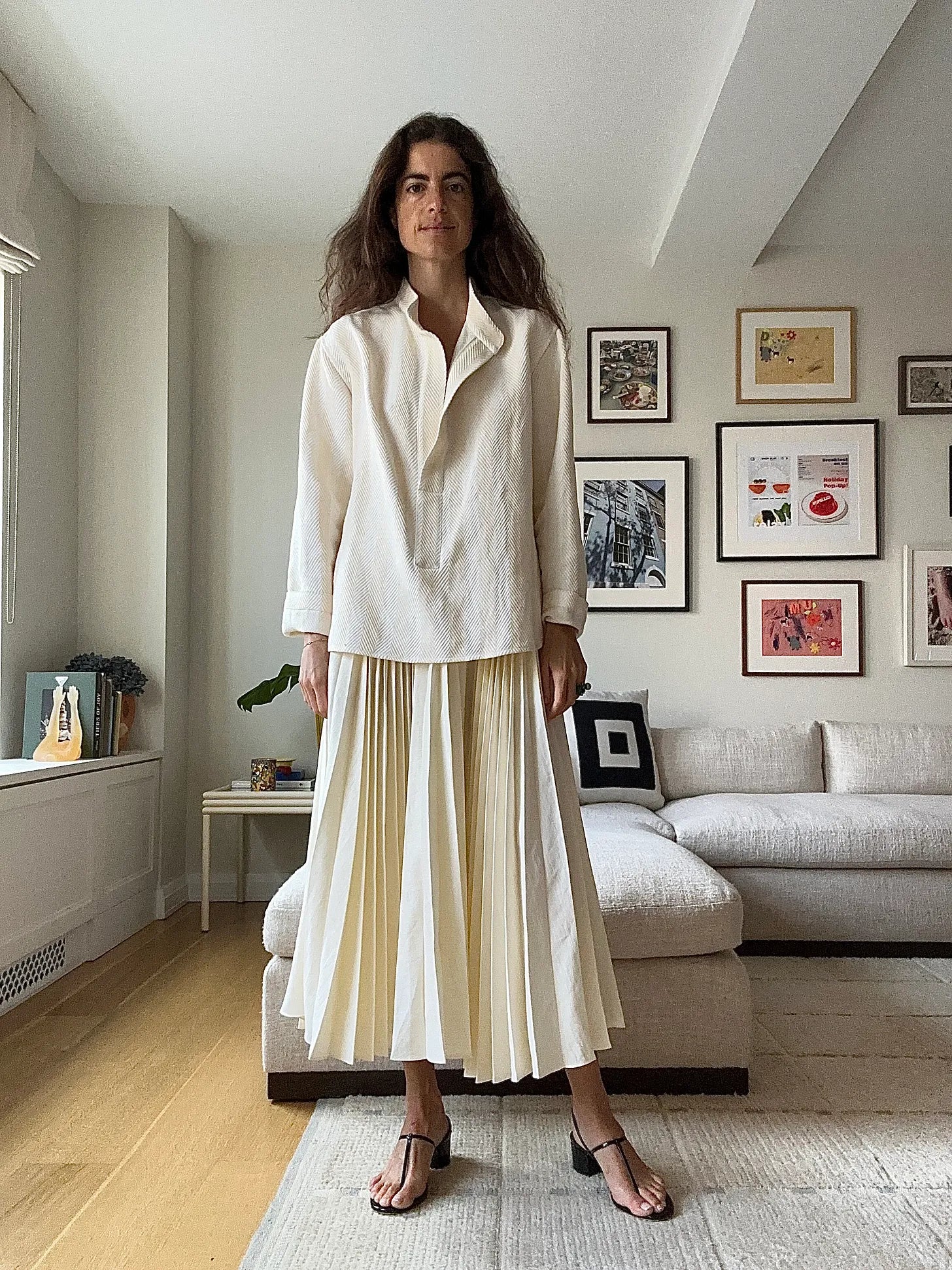 The Doen sandals are the bridge between the one above and this, with an Attersee top and skirt. Wear it to your kids’ graduation next year