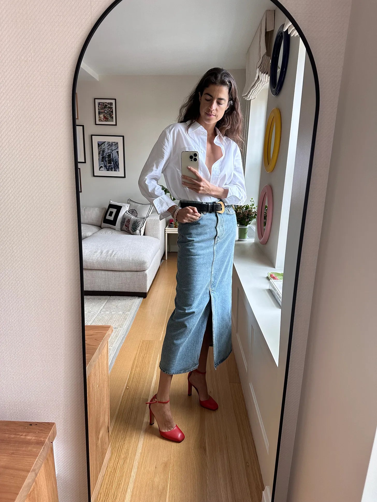 This basic pairing. I call it: Rosh Hashana lite. (With Valentino heels I bought from this weird Groupon-esque designer shoe site at least 6-7 years ago (here, if you’re a size 5, and here if you prefer to tango), a Loulou Studio skirt (this one is a nice wash and I like how this one is styled) and Soeur button down — it is the best one for more formal occasions when you want something less fluid than LMND’s Chiara) but if you’re good on a white button down, this khaki number caught my eye while doing this market