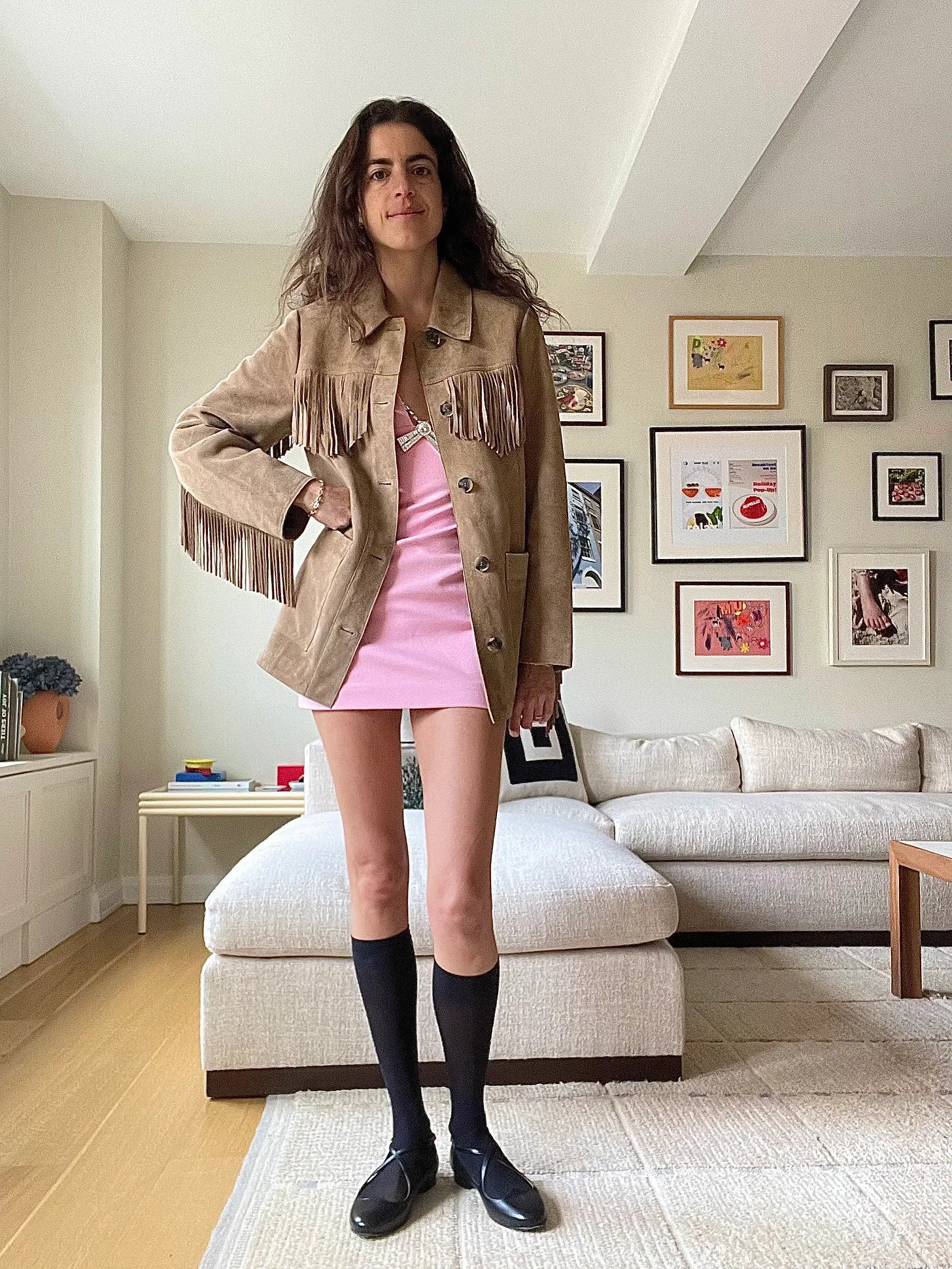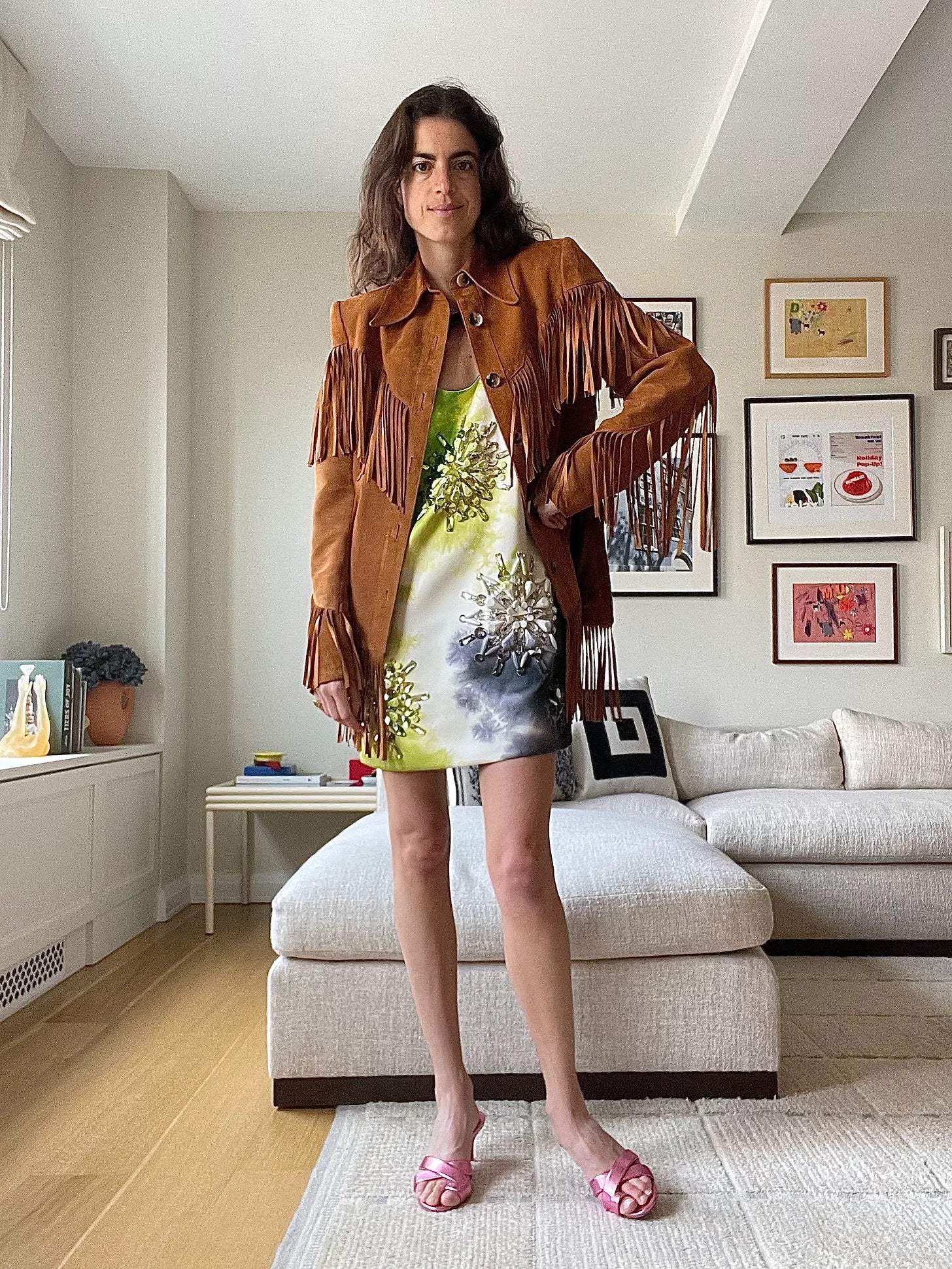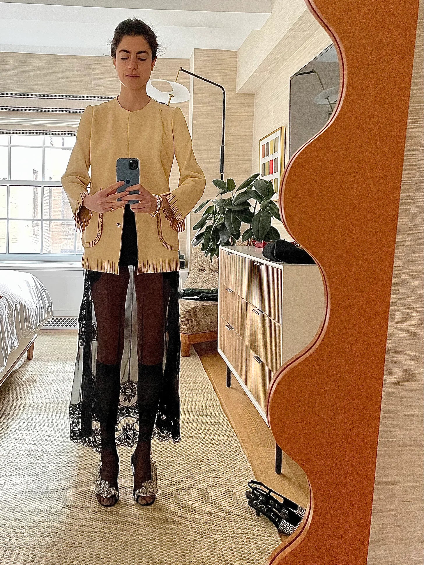Laura says Khaite, Bode, Isabel Marant make the best fringe jackets and recently, she’s been sourcing and making vintage ones in Morocco. She’ll find the fabric (likes it light and soft) and then direct the tailor/seamstress from there.
