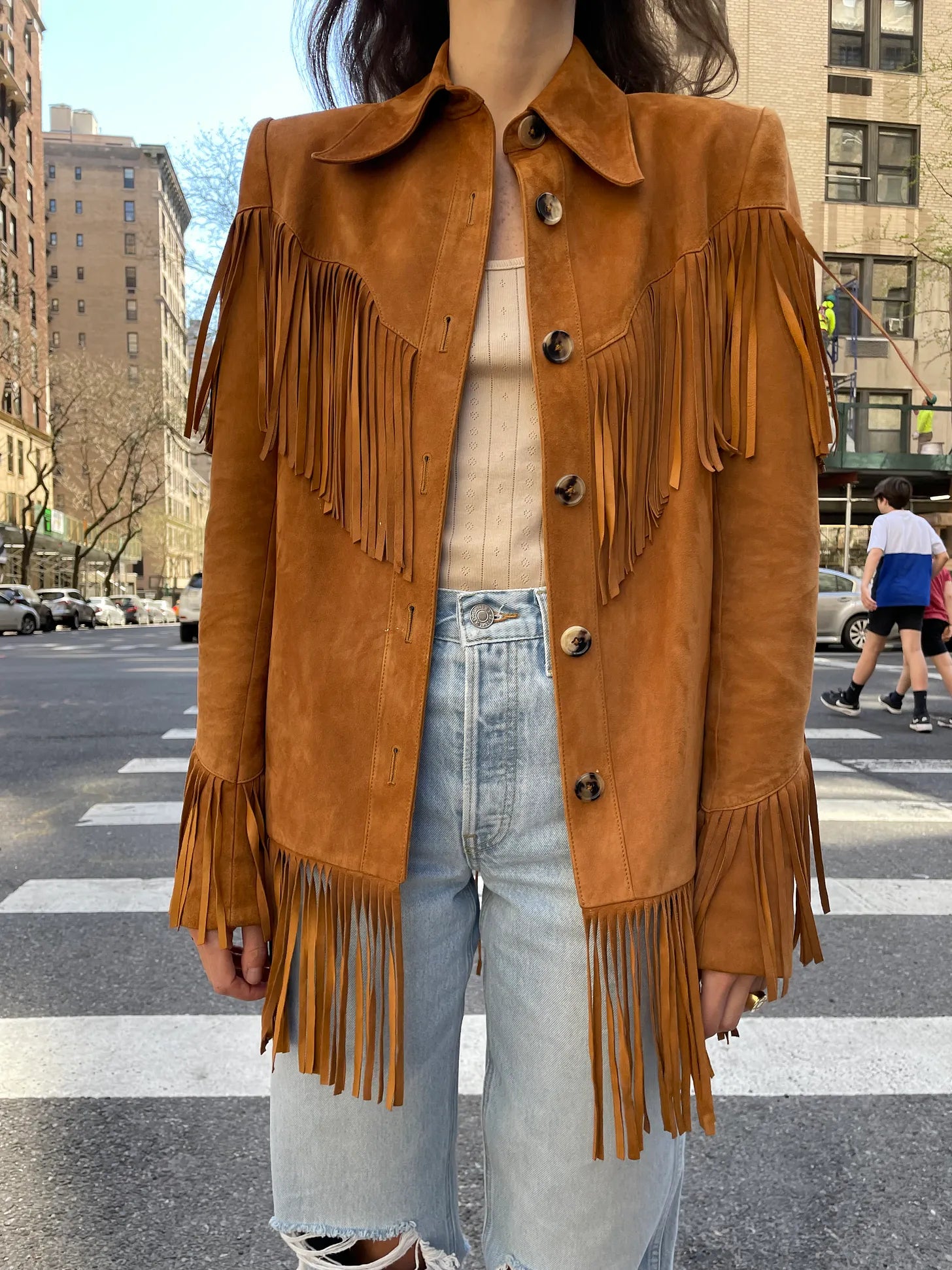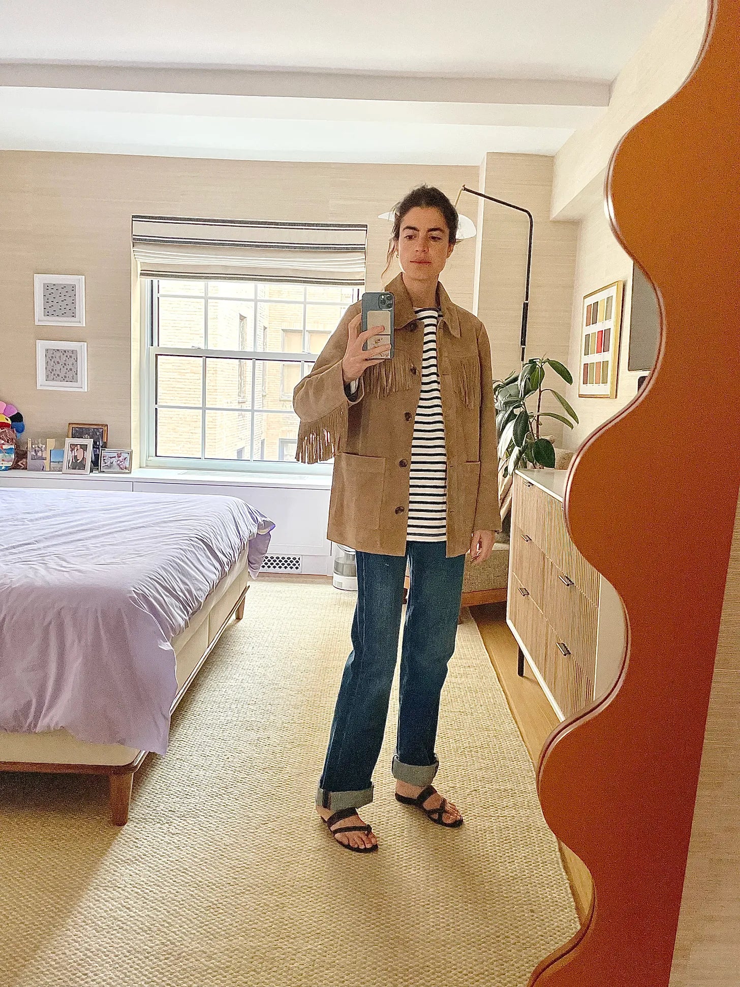 There are few garments that can make you feel styled/put together/like you are cool. One among them which I return to every liminal season (fall, spring, with a special emphasis on the spring) is ~the suede fringe jacket.~