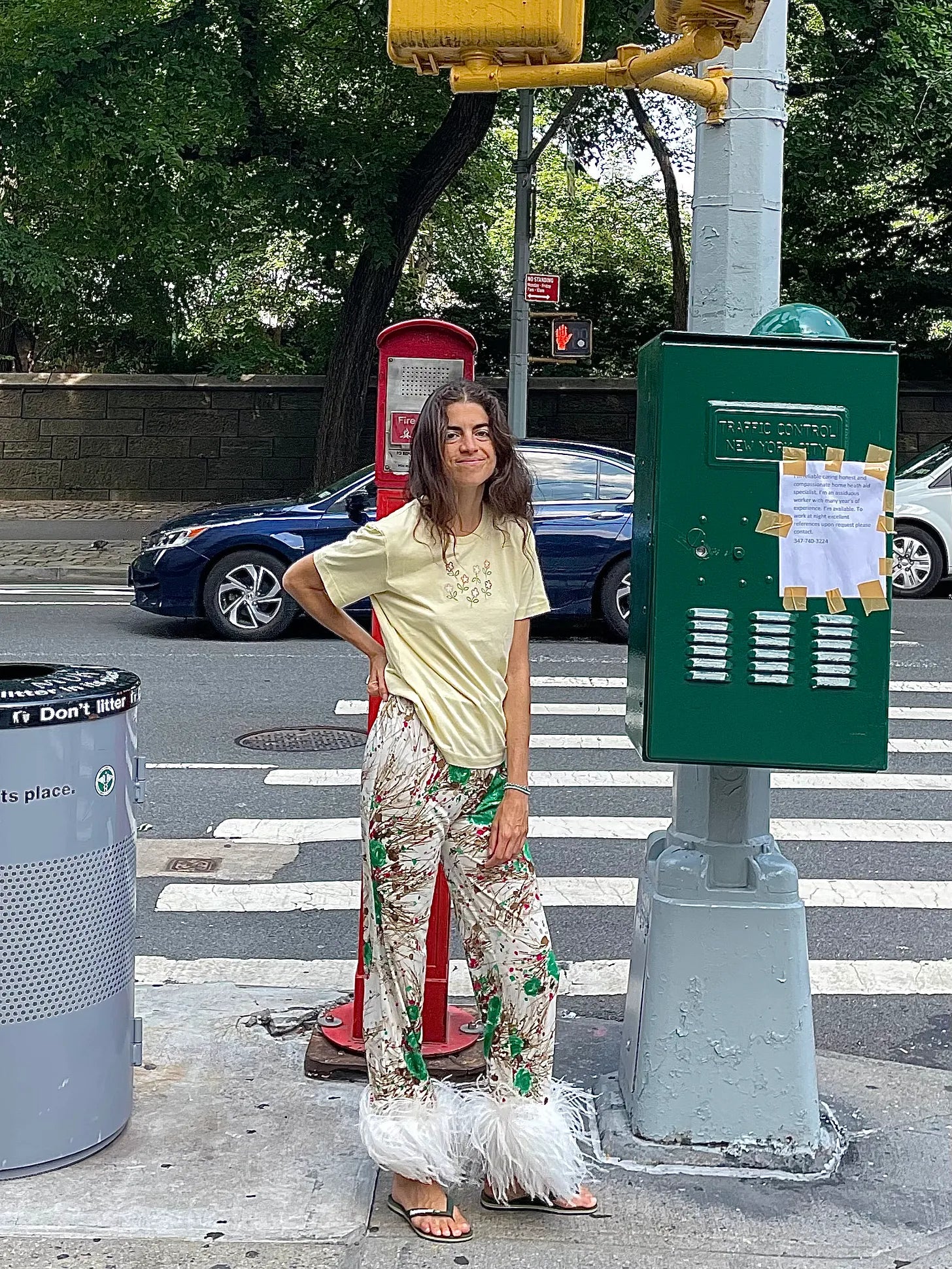 Binné t-shirt, Prada pants (on sale $260, can’t blv I just found these) from an exclusive they did for MyTheresa 100 years ago — these from Sleeper do the trick, and so could these from Adriana Degreas; plus, of course, Havaianas FLIP FLOPS!!!