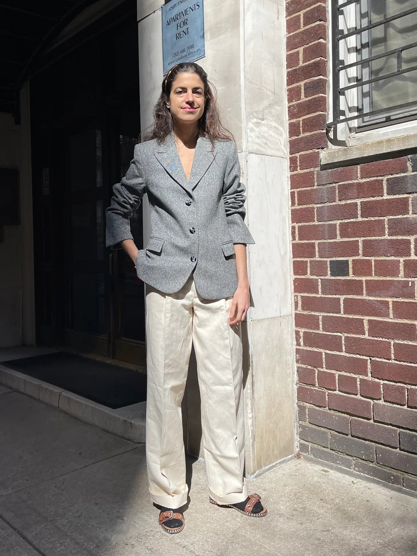 Bouguessa blazer (I recommend a single breast as opposed to double breast blazer if you plan to wear it closed like a top and like this one on TRR), Soeur Paris pants, Marni sandals (dif dif, but same) (from The Real Real, obviously — but I was rly looking for these @ the time)