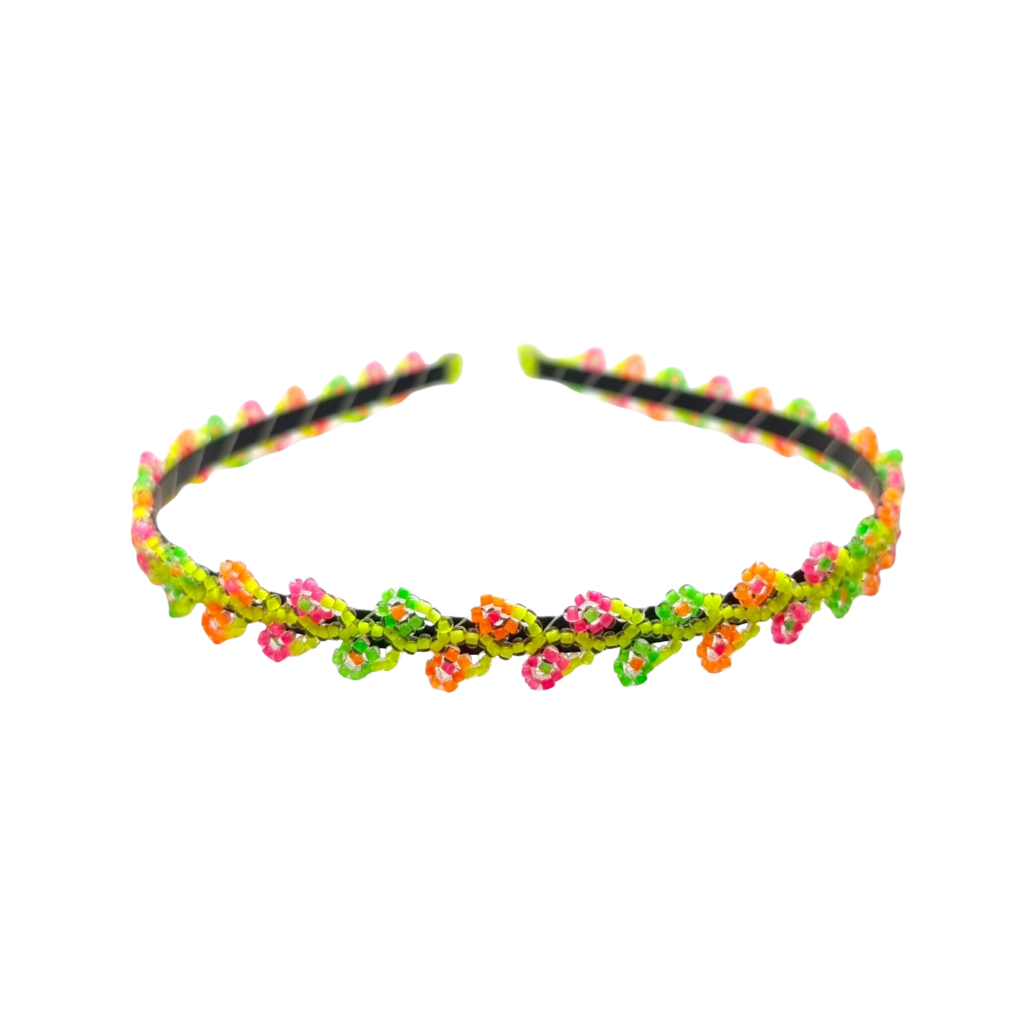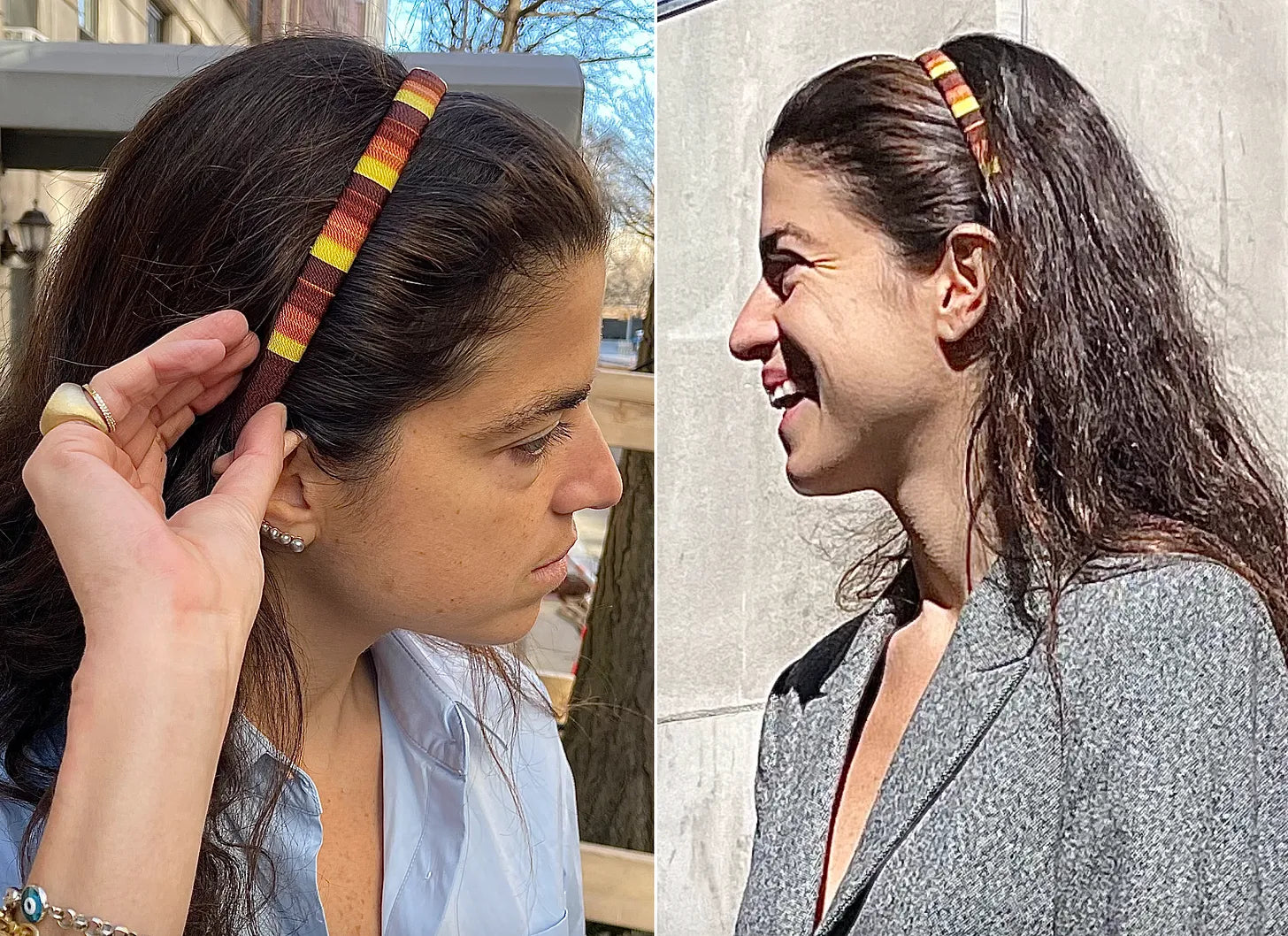 This headband is from a market in Mexico City; most of them were beaded, which I loved too, but went with this one because the color combo reminded me a bit of Dries and old Prada. A different vibe, but good too is this Carolyn Bassette-inspired style