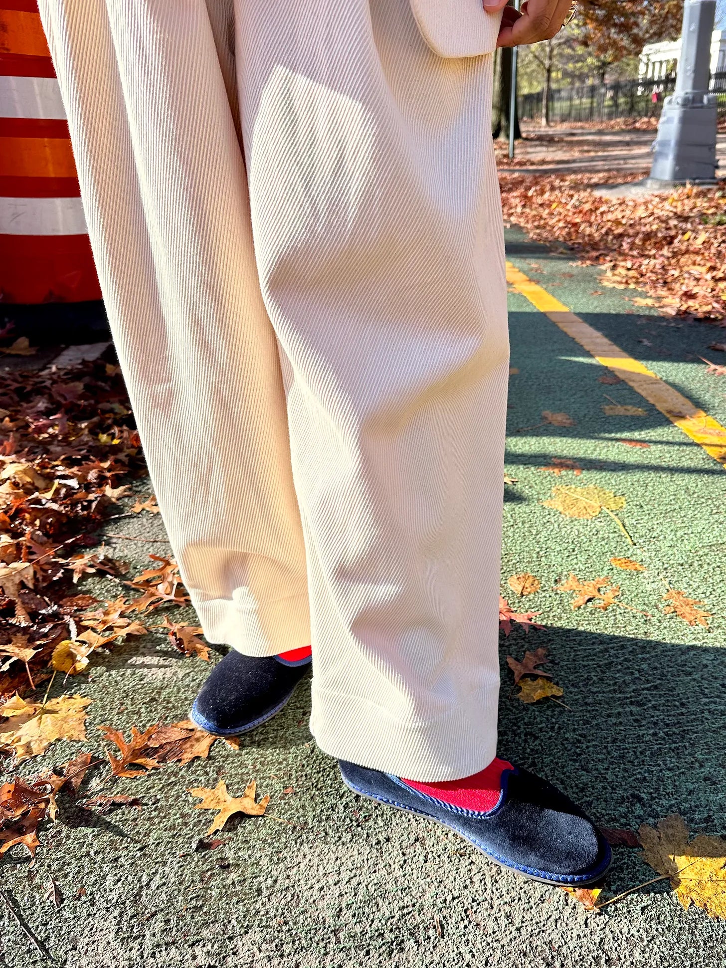 Vibi Venezia furlane slippers (with some good red socks here) (which come in suede now, fyi)