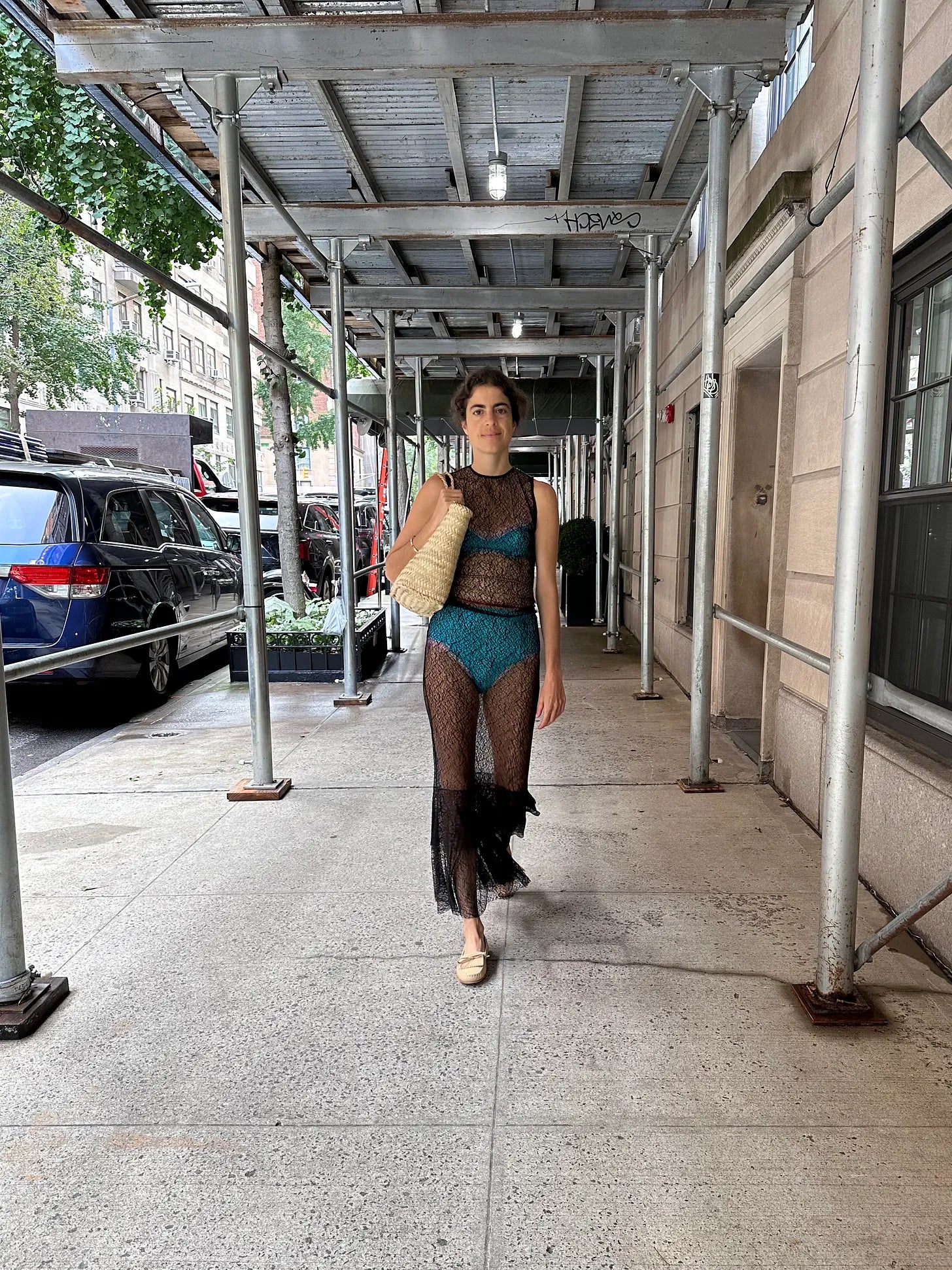 Silvia Astore dress (love this one for an Alaia effect and unrelated but this one’s a beauty, huh), Dora Larsen bra/underwear set, Jamie Haller mocassins