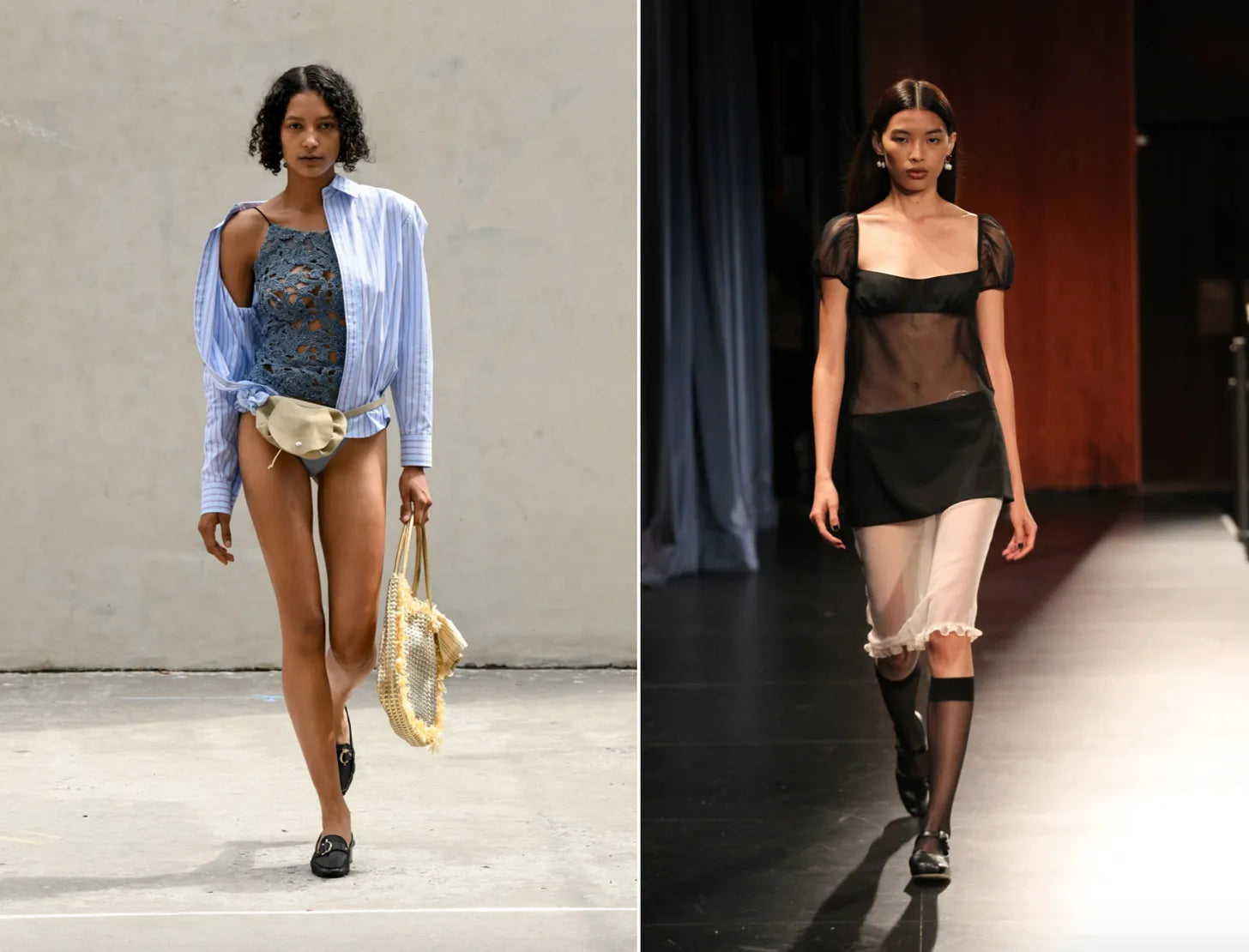 A few weeks earlier in New York, there was a striped underwear set styled over a crochet tank (with loafers and a fanny pack) from Maryam Nassir Zadeh and from Sandy Liang, an array of boudoir style looks with satin ballet flats/mary janes and knee high stockings.