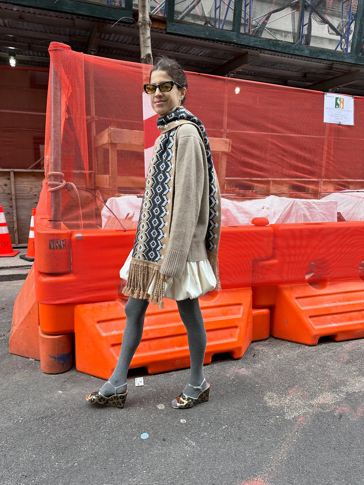 Wear your scarf like its a shawl and you’re at a fancy wedding