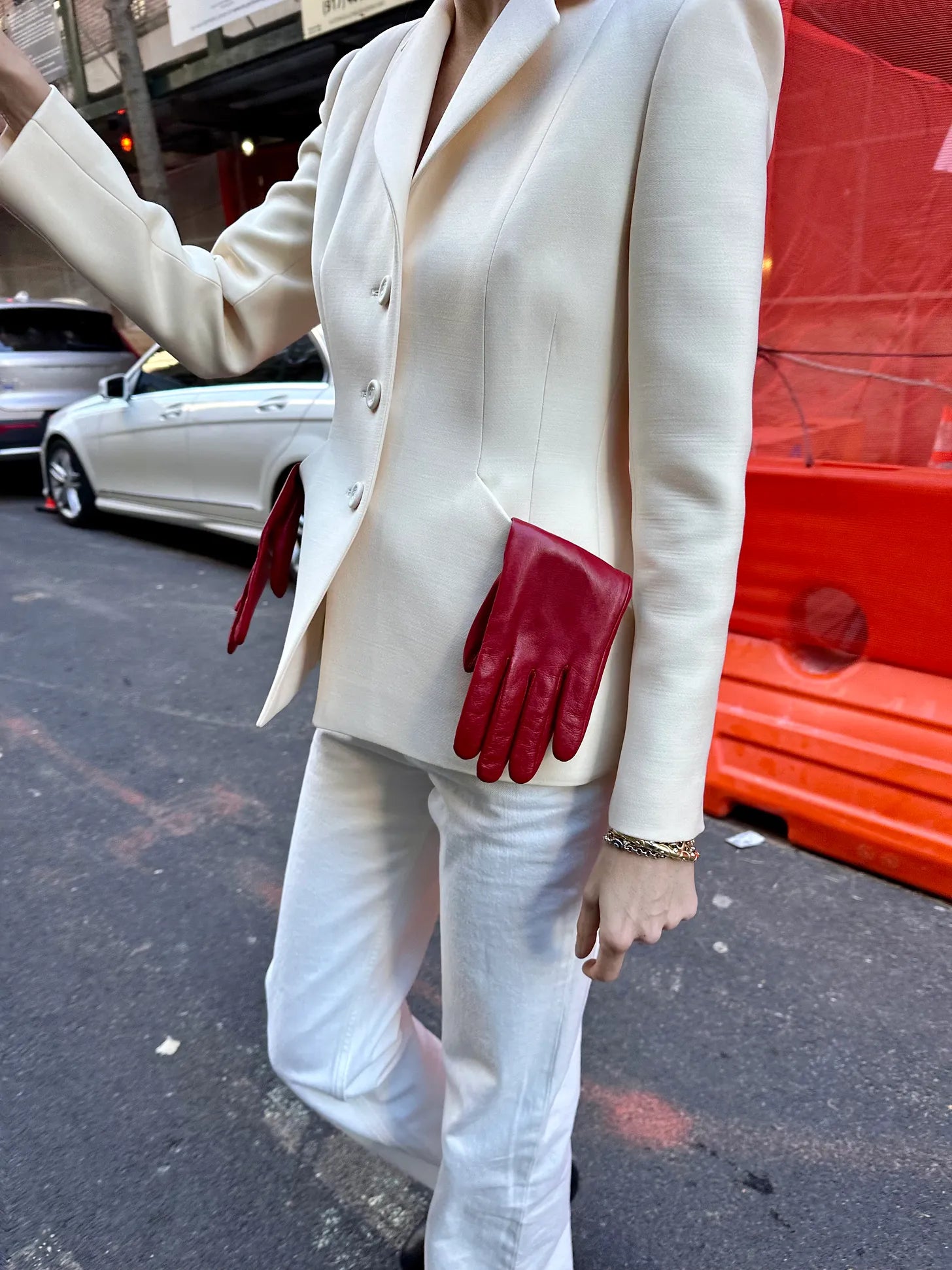 Add texture to your outfit by styling your coat with gloves of a different fabric