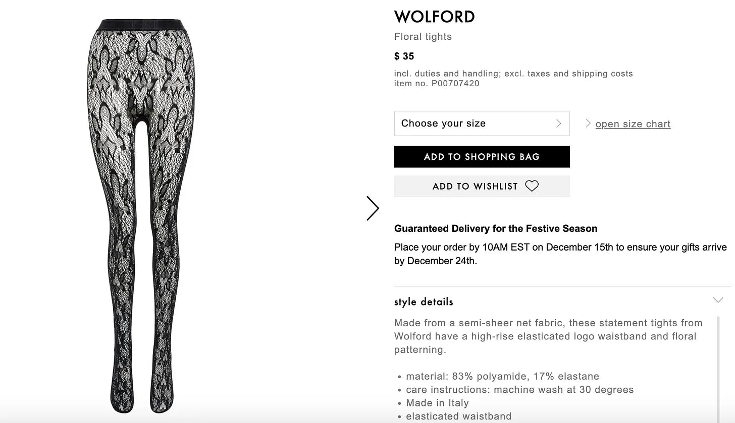 You get a two-for-one deal by just buying tights instead of socks because you can wear them with short things and with pants. Here’s the link to the lacey tights