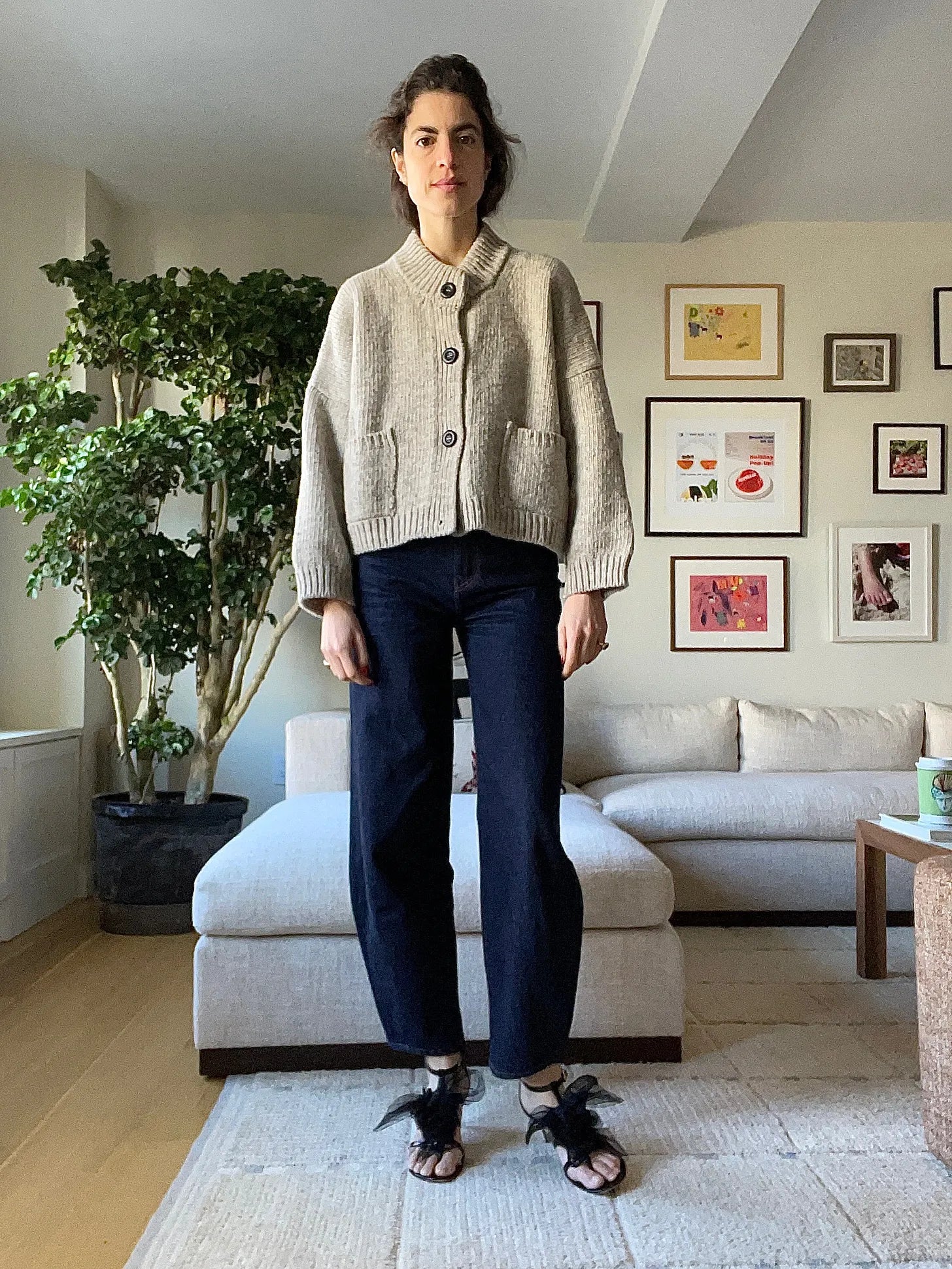 Notice how my tops are not doing much other than being tops? But this one does have the added benefit of being very warm. Babaa cardigan, Chanel sandals — they’re from the 2016 Cuba collection. But any heel with a single sole (as opposed to platform) heel can work here. My preference is a pair that’s not open front (like a pump or slingback, so more like this or this) because the jeans are kind of cropped, but that’s just me