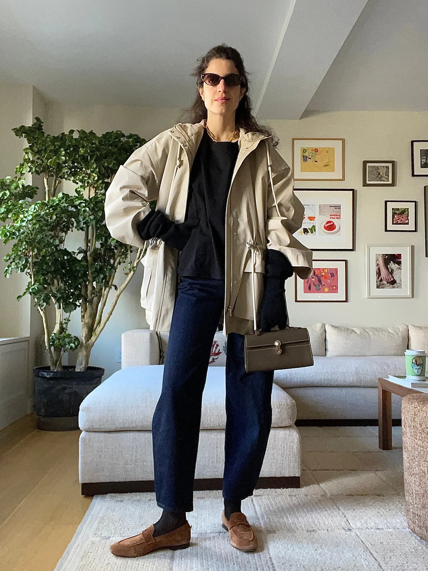 Skall Studio anorak, Khaite t-shirt, Savette bag, Bougeotte loafers and these stockings should do the trick