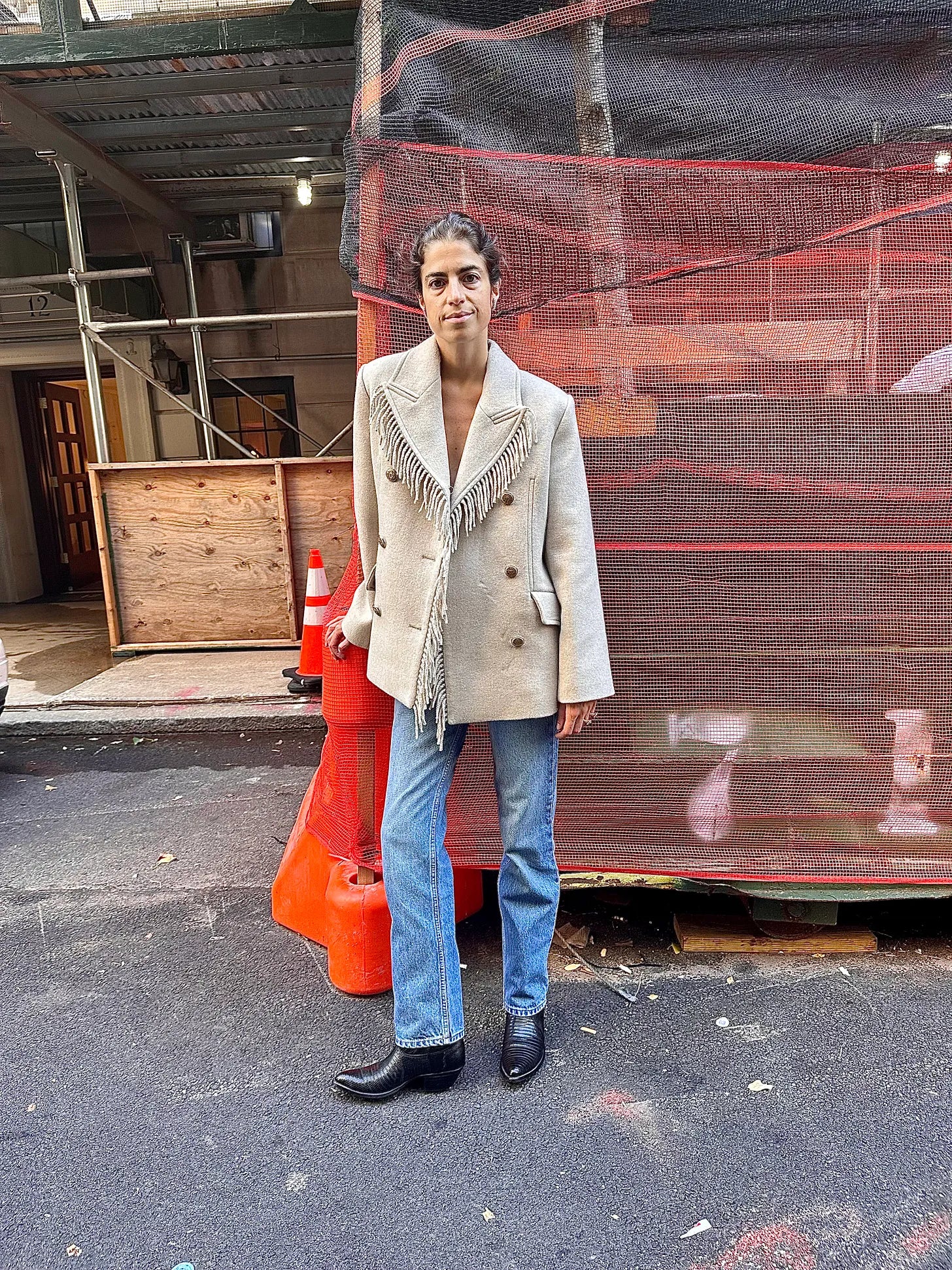 An example of cowboy boots found in the TRR trove, styled with a jacket from By Malene Birger and Rouje jeans (a pair of men’s 501s would be good too, esp to nail the slouch — I wear a sz 29 for context)