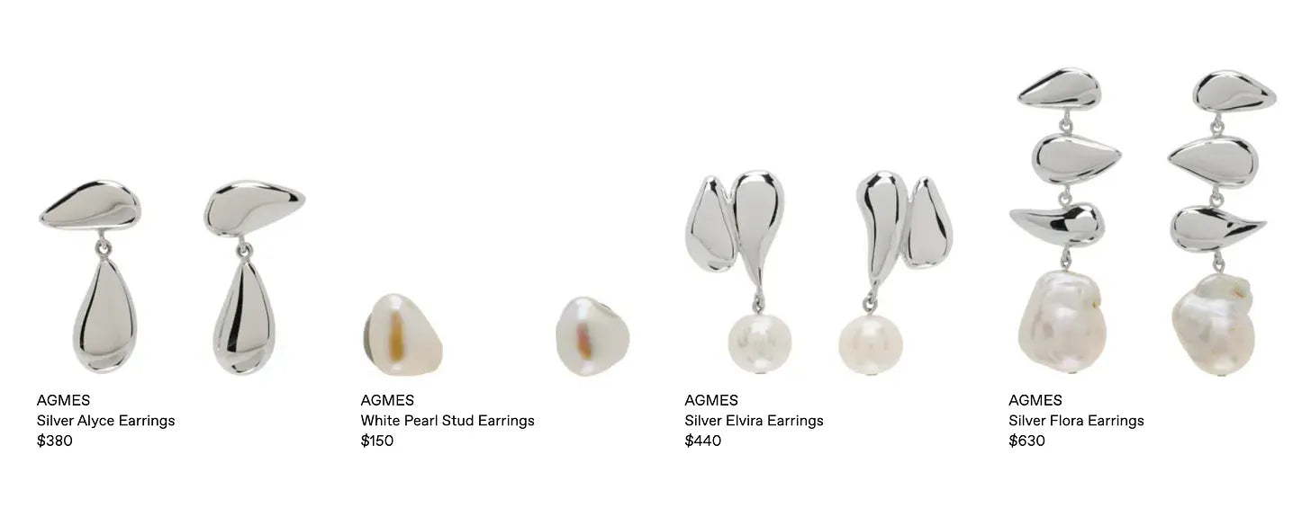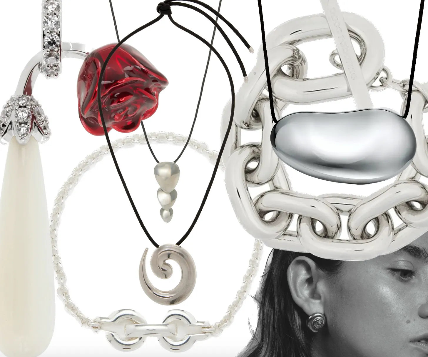 As far as jewelry goes, time to dust off that Elsa Peretti! The silver finish is usurping gold’s throne. Responsible for this one could well be Sophie Buhai, who has long sculpted in silver. Agmes has been at this rodeo for years too.
