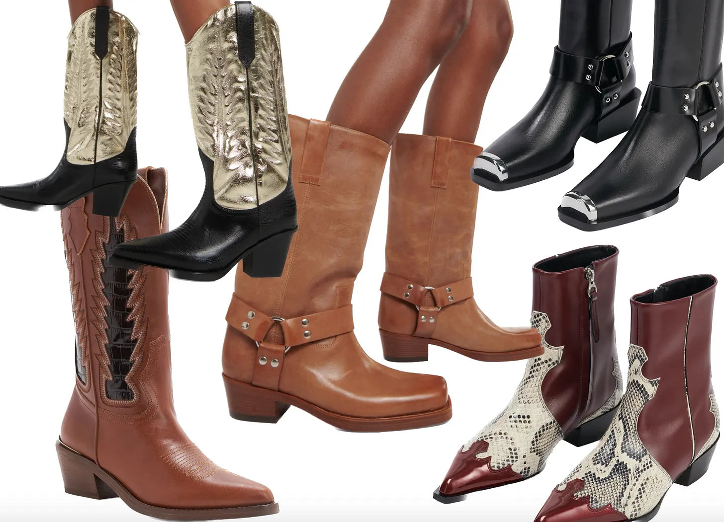 The next style on my mind is the cowboy boot. Well, a cross between the cowboy boot — which you can find on the commerce pages of Prada, Gucci and Dior rn, and the motorcycle boot (derivative of Miu Miu mania to be sure).