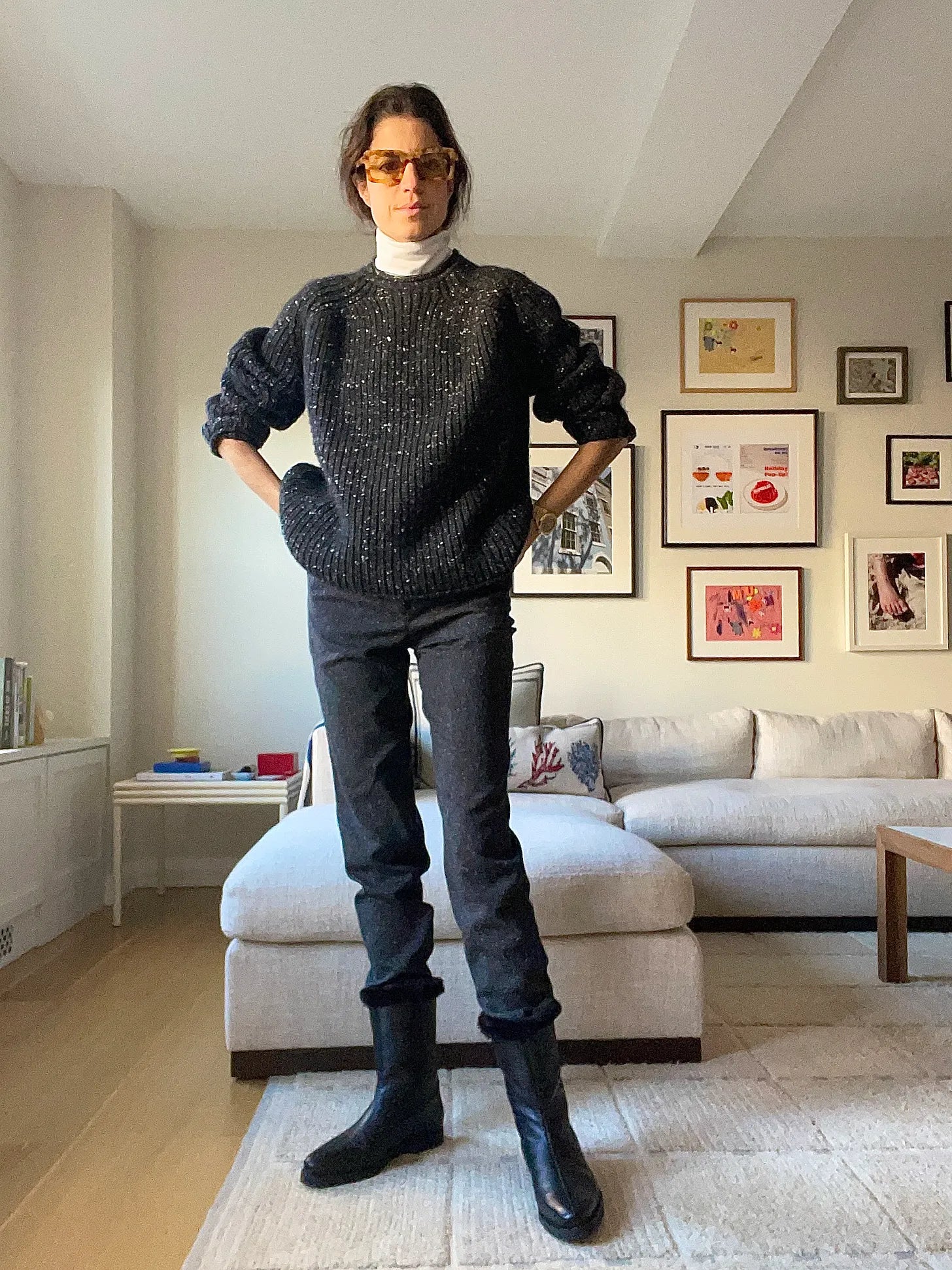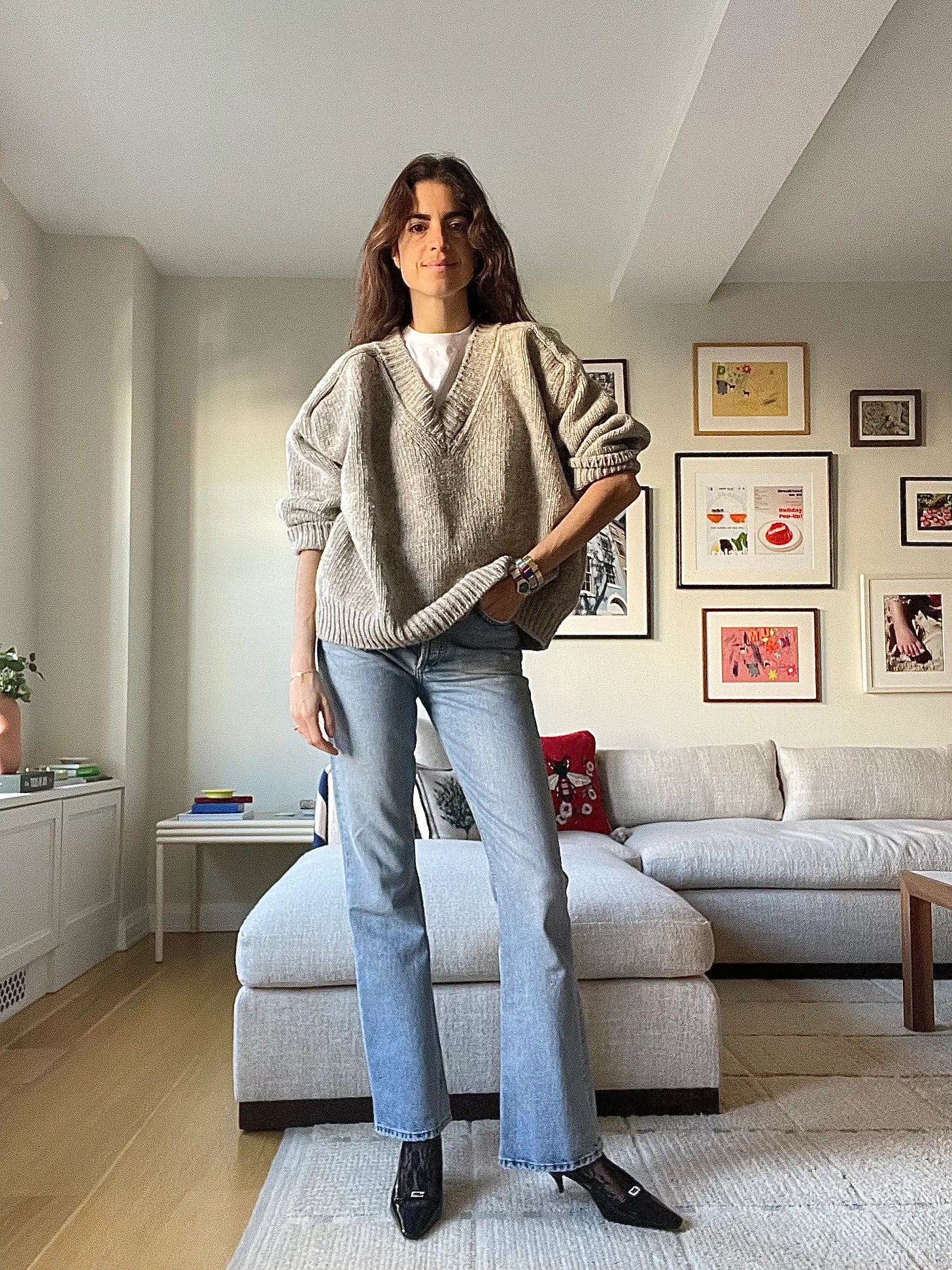 Now that I think about it, this is basically the same dressing formula, just modeled in different silhouettes. But it’s worth including — can’t say enough good things about these Babaa sweaters. (Styled here with Citizens of Humanity jeans, Saint Laurent slingbacks and tights like these)