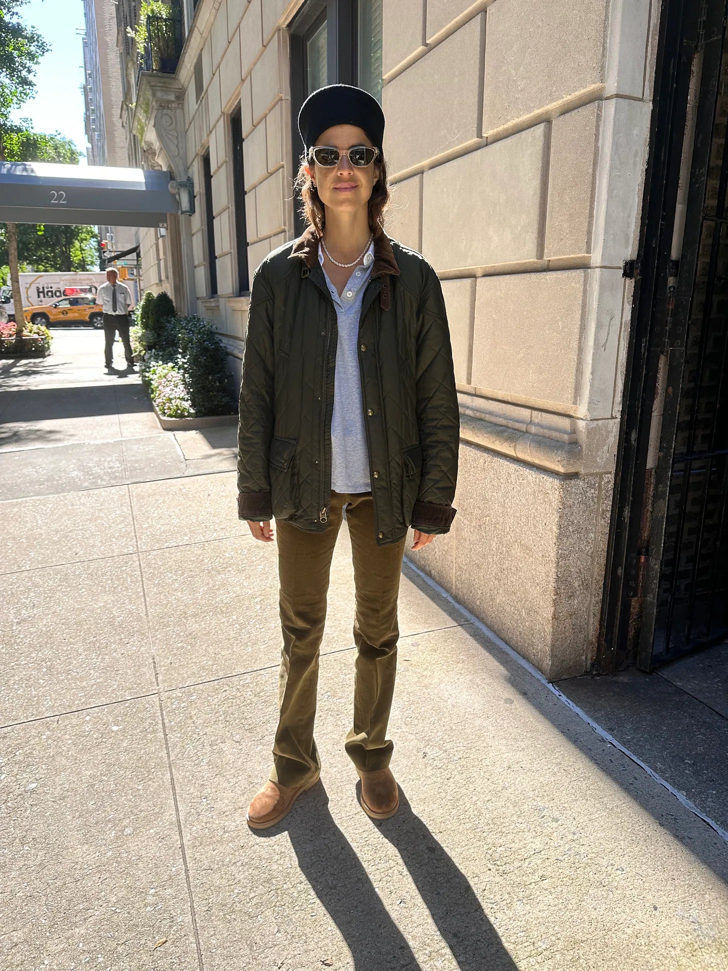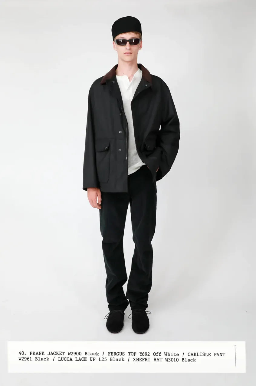 A de facto cap from The Row x2, Abie’s polo jacket (might like the one from J. Crew better and on an unrelated note, the contemporary men’s leather jackets are sooooooo worth trying to achieve this effect, no?), Kule grey shirt, Pallas Paris corduroy pants (these ones look like an absolute best bet but maybe these or these too?), By Malene Birger boots