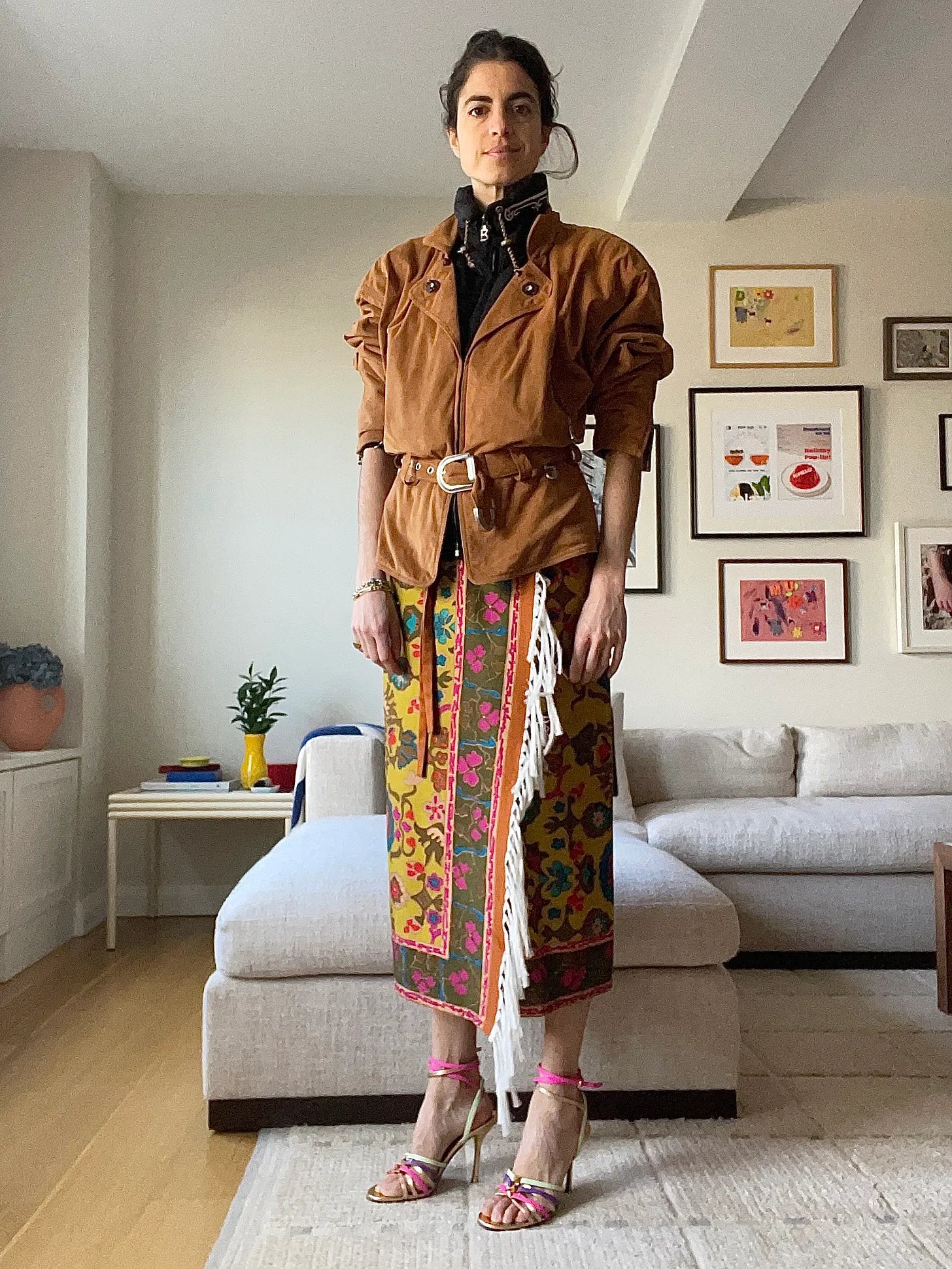 This is a Valentino skirt from a collab done with MyTheresa last year (you can recreate the vibe with a weighted sarong that has fringe trim, then belt it), and Valentino sandals (sent them back! Not sure I’d wear them in real life), not from a collab but acquired through MyT.