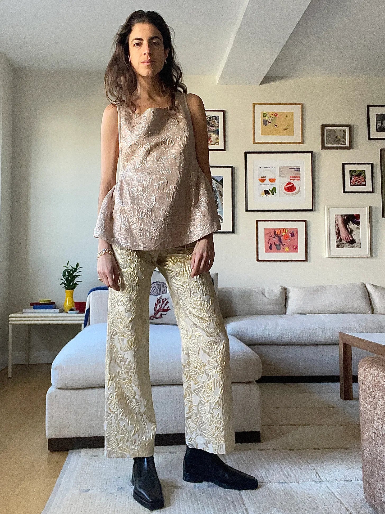 I bought these old Celine pants in Paris like 6 years ago. And to date, I have not one single pair that makes me feel more mature and confident — styled with the MNZ vest, an old Chloe shirt with a dramatic collar, and house slippers I “thrifted” from the back of my grandmother’s closet. Here’s a close-up because they are great and I don’t fully understand how/why she only wore them at home: