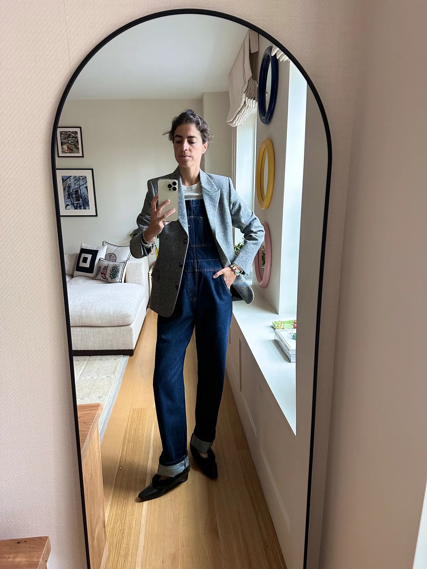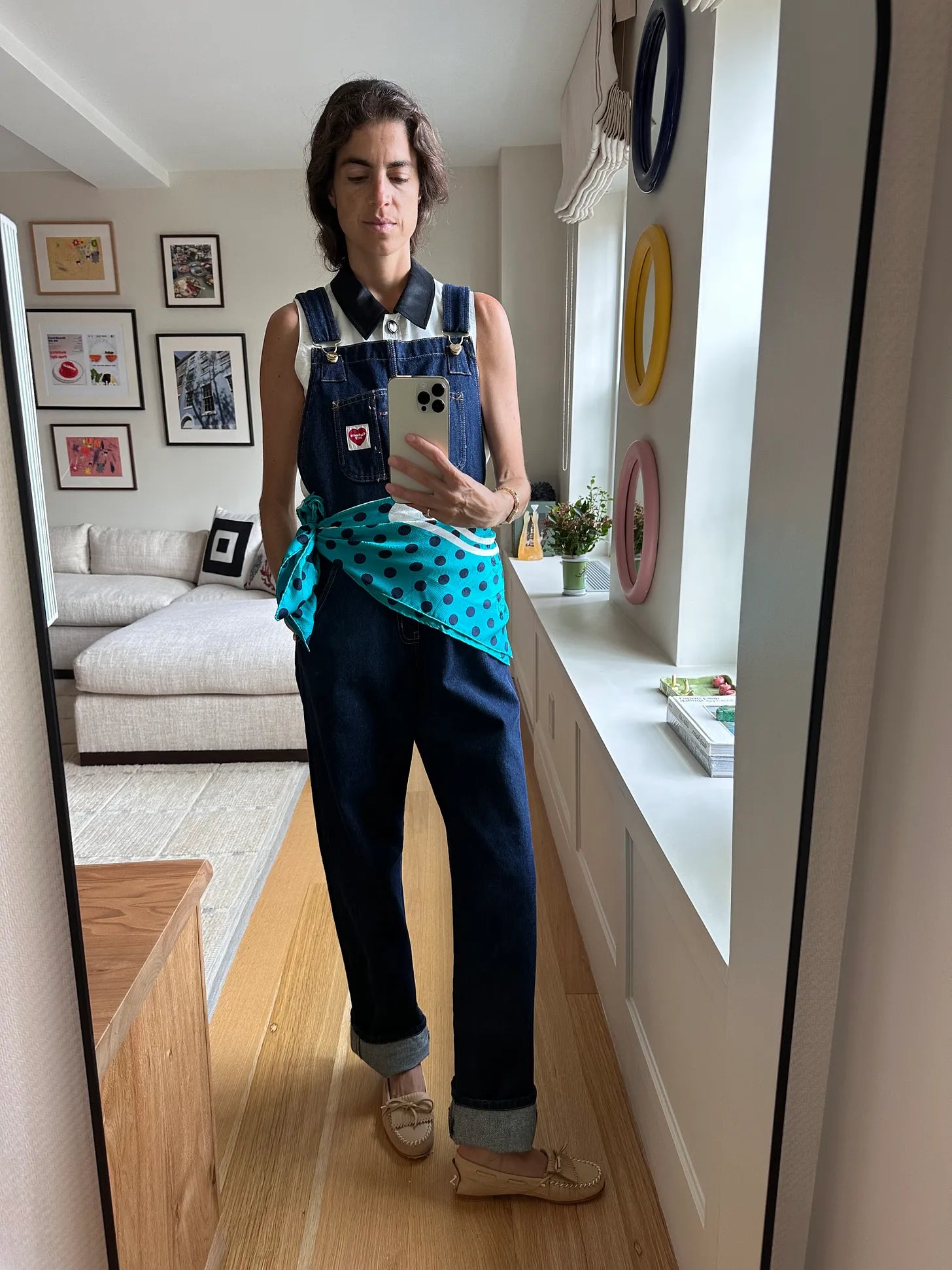 This, too, was inspired by my friend Laura. The loafers I’m wearing are Jamie Haller and the shirt under the overalls is more like a vest, from a Shanghai-based brand called Märchen. (This dress must be really fun to play with too.)