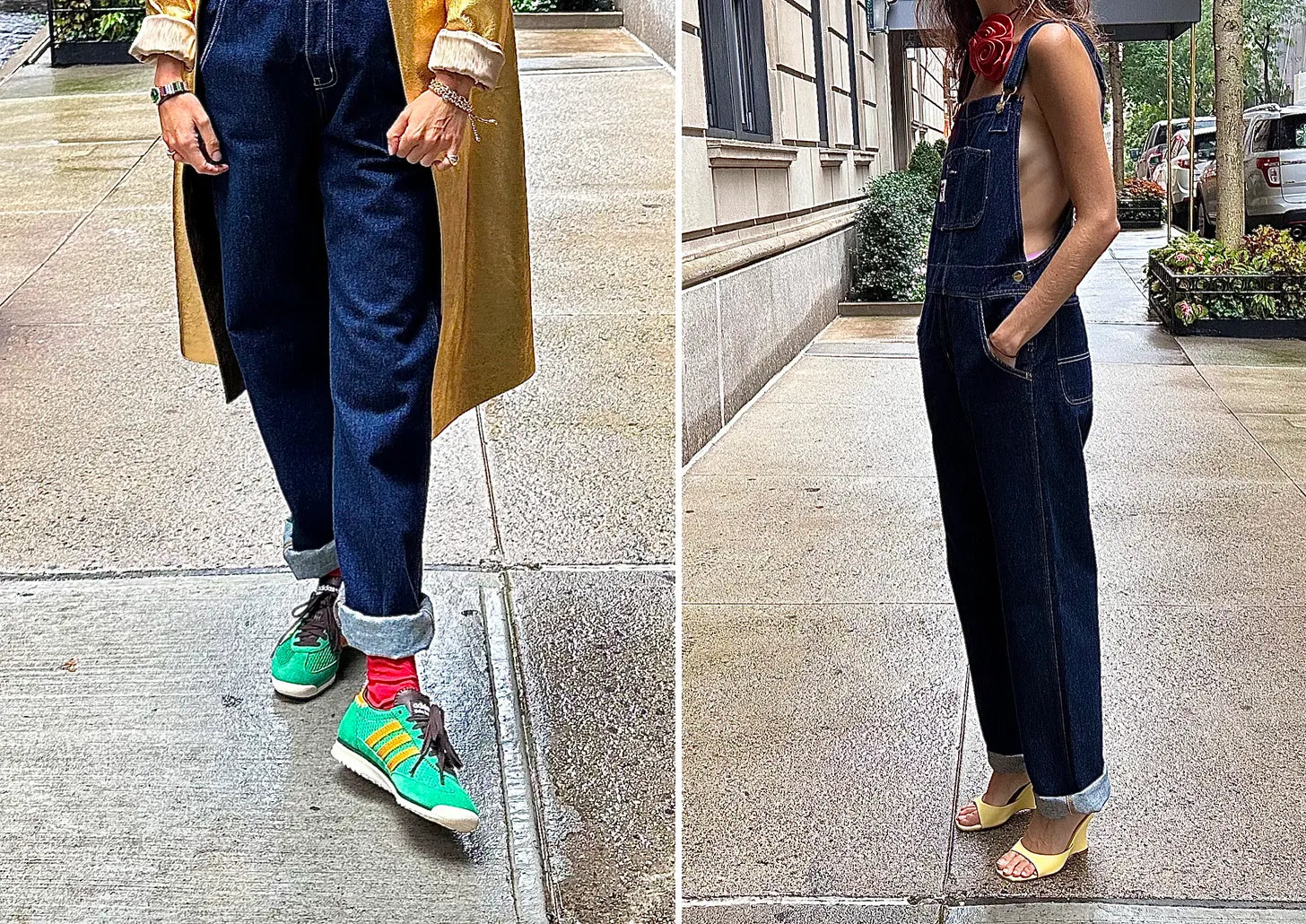 In the previous look, they were rolled up x3, so you could catch more of the red sock. As far as color pairing goes here (it’s a thing!): yellow and red (warm colors) to offset the denim’s coolness.