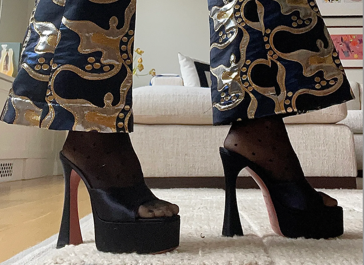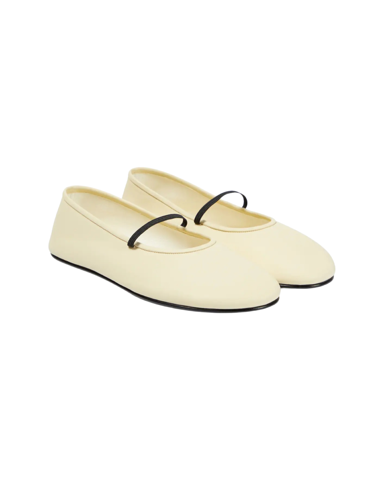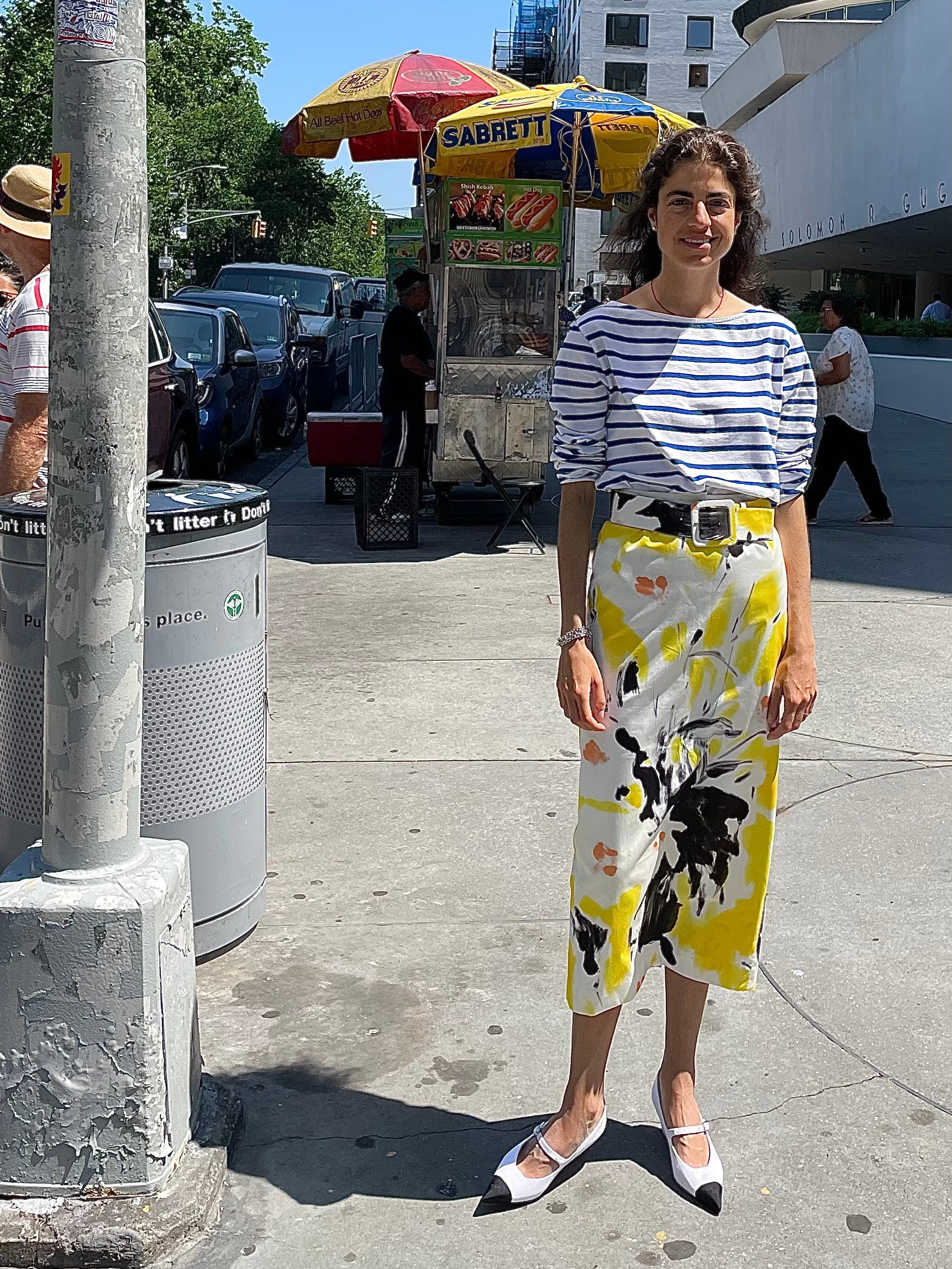 In the capsule you’ll find shades of charmeuse green and periwinkle blue silk on slides that cover the top half of the foot. These mesh perfectly with airy, nightgown style dresses. You will also find the classic Mary Janes in brown or light pink which I like best worn solo with a one-piece bathing suit and button-down shirt as a cover up.