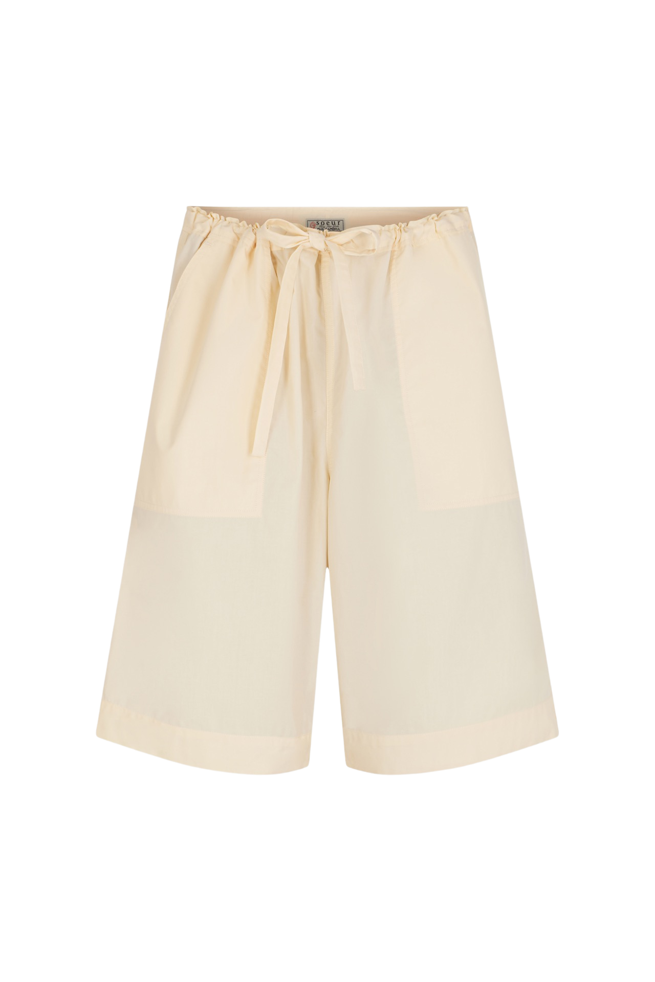 The first is an ivory set that you can wear together with the shirt buttoned up while you’re in a city, or over a bathing suit while beachside. The shorts have an elastic waist band so you can tie them up tight on your waist or low on your hips (my preference these days!).