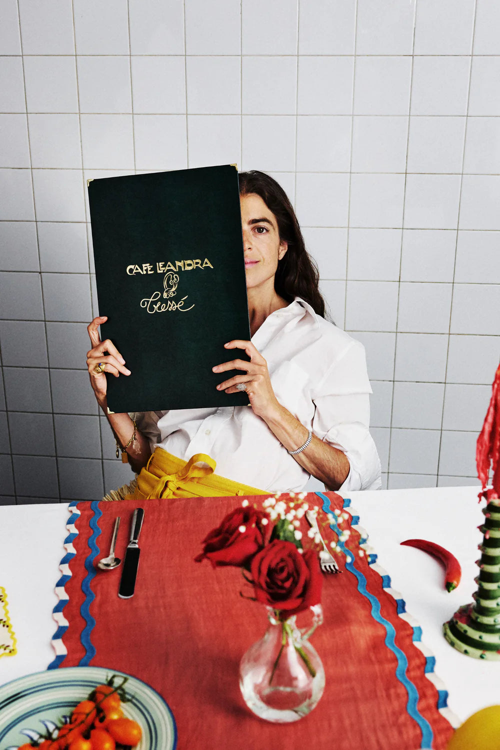 I teamed up with Paris-based lifestyle brand, Tressé to bring my expert eye and flair for cool eccentricity to a range of tableware. Included in the assortment? Ceramic dinner and dessert plates, sharing bowls, and serving platters— my favorites are the platters on stands. They add a bit of dynamism to a spread, creating different levels across the table. I also love the bowls! Plus a chic cotton apron skirt trimmed in raffia fringe for you.