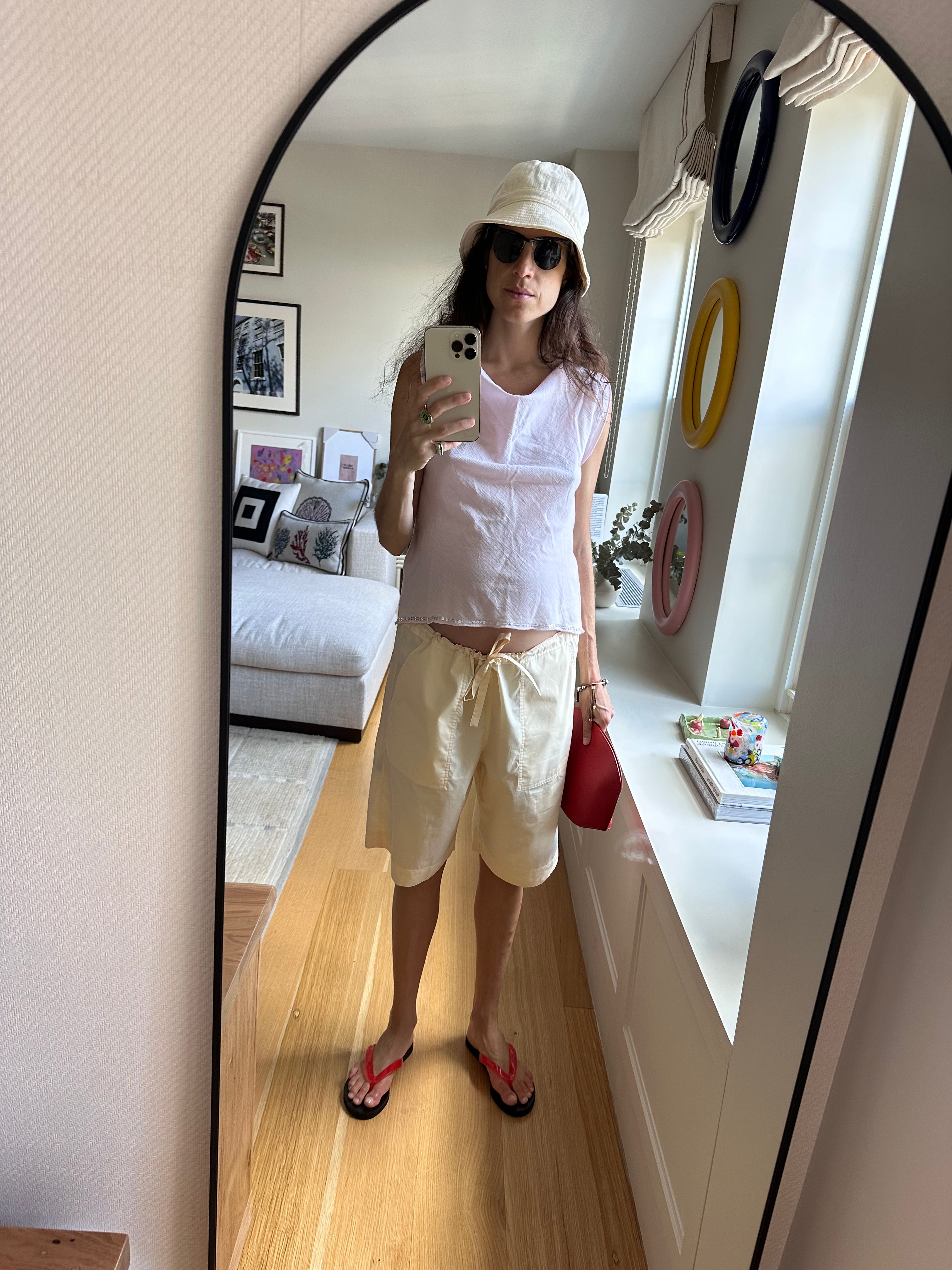 This is an outfit I have had on repeat especially before Joelle came - delicate top, functional shorts.